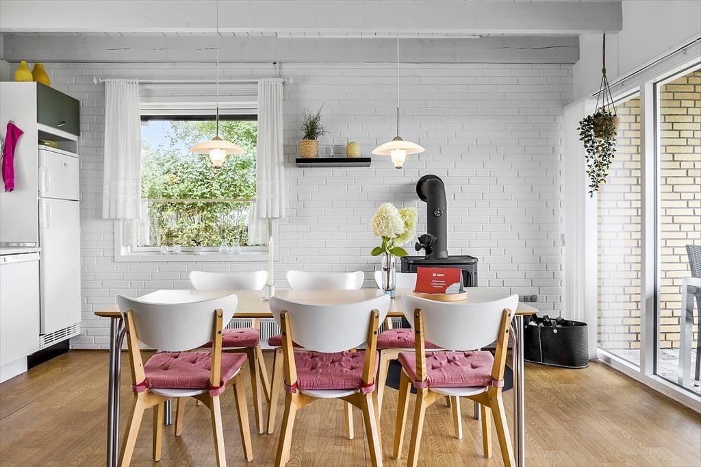 Die Nähe zum Fjord mit seinen grünen Küsten sorgt für eine besondere Atmosphäre im Ferienhaus. Besonders aus dem großen Wohnzimmer im Obergeschoss ist der Ausblick fantastisch, durch die Panoramafenster kannst du über die offene Landschaft in nordwestliche Richtung blicken und mit einem Fernglas die Vogelwelt beobachten. Vom Wohnzimmer im ersten Stock aus kommst du direkt in zwei der Schlafzimmer sowie auf den überdachten Balkon. Das Badezimmer und ein drittes Schlafzimmer befinden sich im Erdgeschoss zusammen mit der Wohnküche, die zu vielen gemütlichen Stunden am Esstisch einlädt. Hier lässt sich der Urlaub genießen, ganz gleich ob der Kaminofen brennt oder die Tür zur sonnigen Terrasse offensteht.