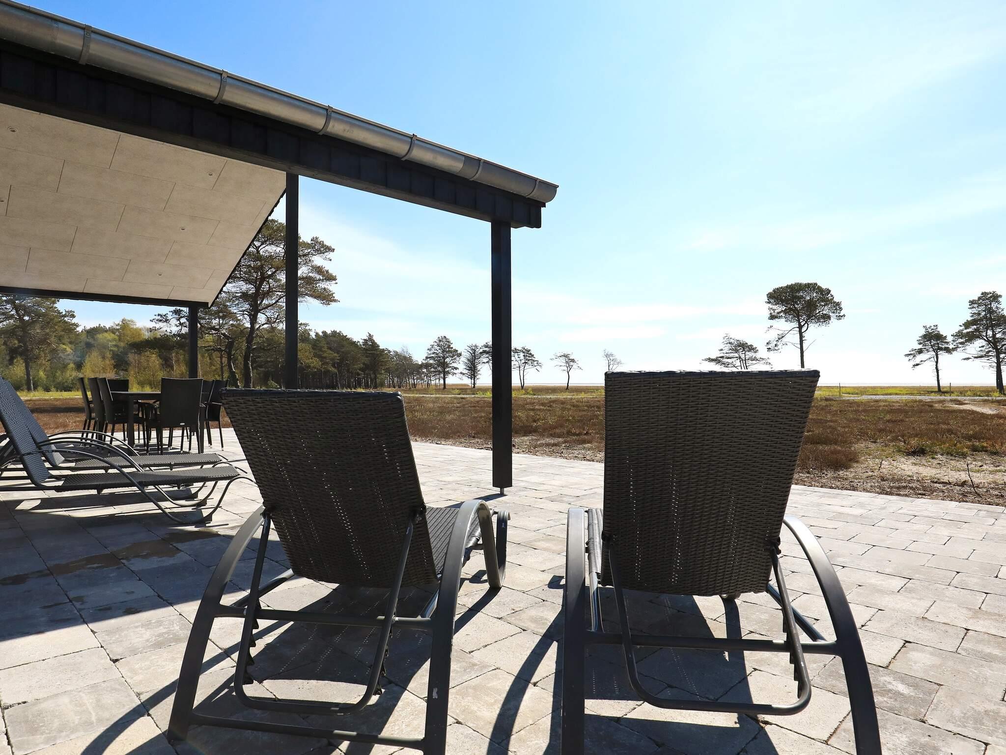 Im Außenbereich stehen einige windgeschützte Sitzplätze mit jeweils Sonne oder Schatten zur Auswahl. Der Außen-Whirlpool des Hauses sowie die praktische Außen-Dusche befinden sich auf einer überdachten Terrasse unmittelbar am Haus. Auf dem weitläufigen Naturgrundsstück davor können die Kinder sich auf Abenteuer begeben und z.B. Grashüpfer fangen.