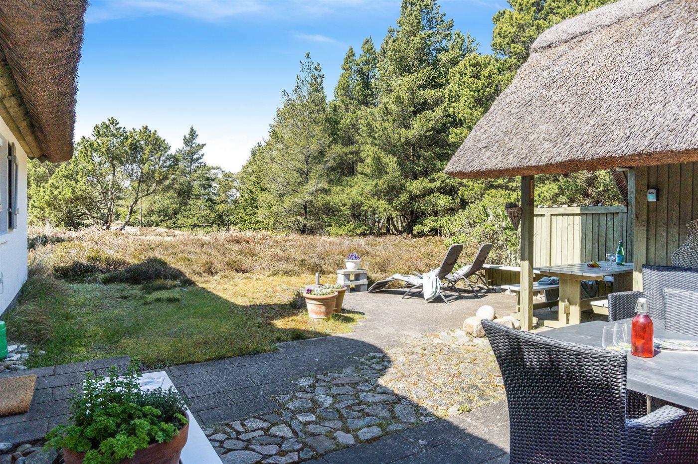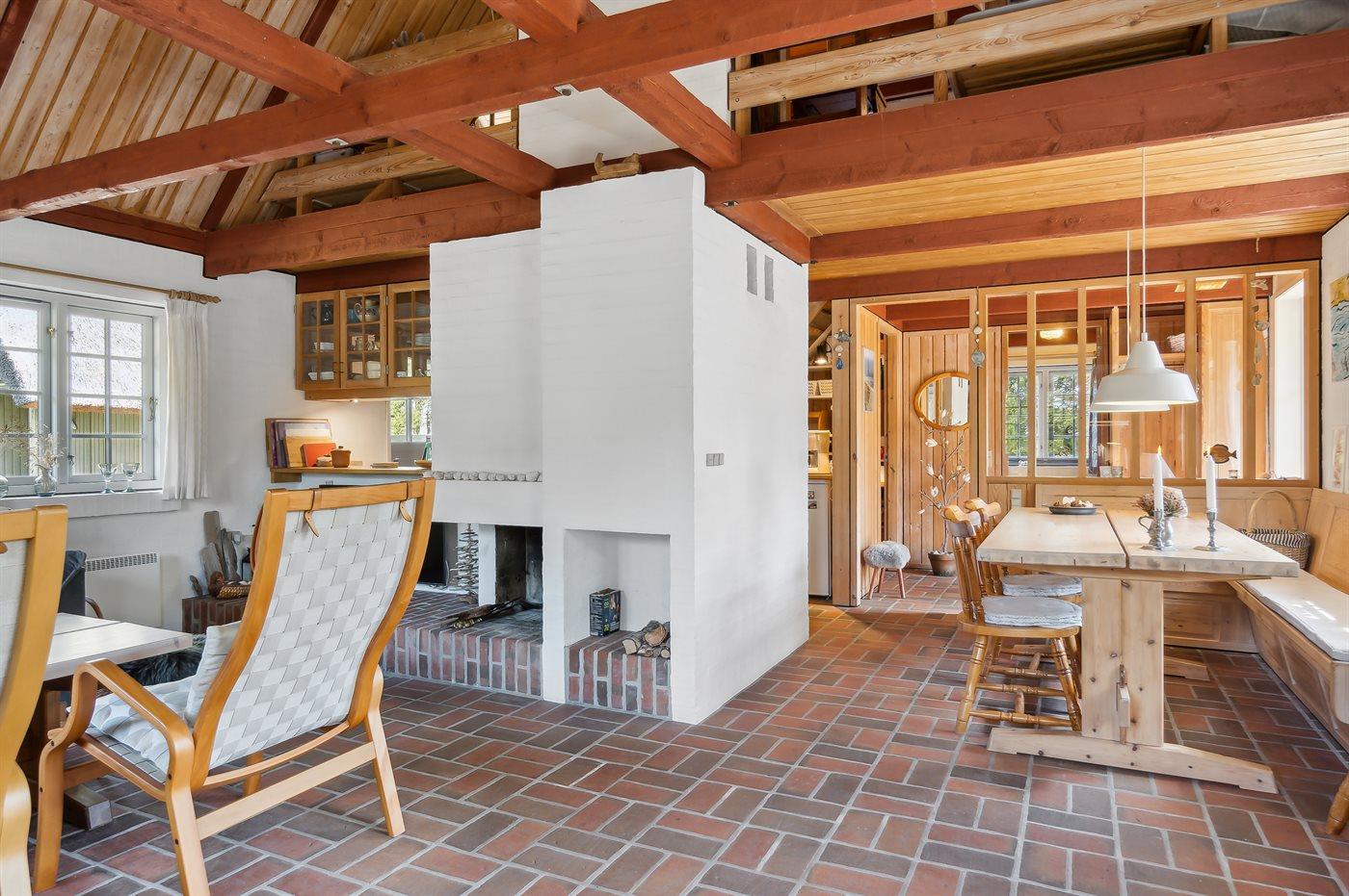Gemütliches Ferienhaus mit Reetdach und Kamin auf großem Naturgrundstück nahe dem Meer.