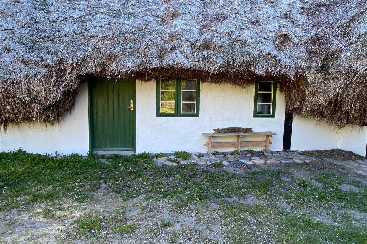 Erleben Sie Ruhe und Natur in diesem liebevoll renovierten Ferienhaus mit Tangdach auf Læsø, nur 900 m vom Strand entfernt.