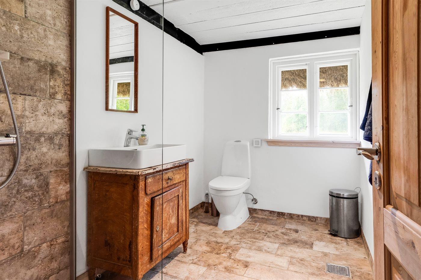 Es gibt 1 Badezimmer mit Duschnische und 2 Toiletten. Fußbodenheizung in 1 Badezimmer. Fußbodenheizung in der Gästetoilette.