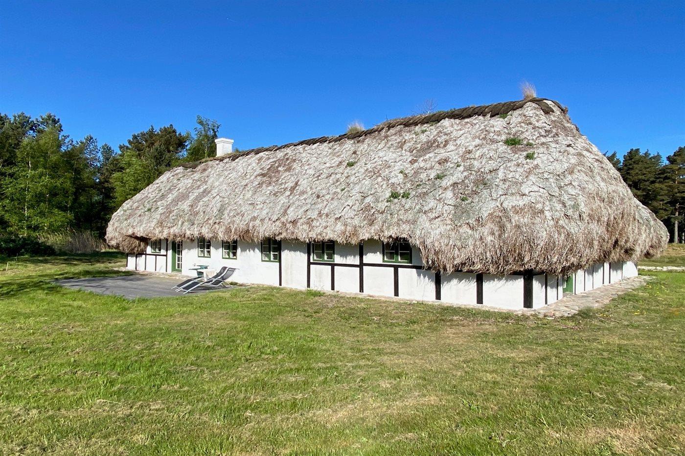 Auf einem großen Grundstück liegt dieses wunderschöne Ferienhaus. Hier hast du einen weiten Himmel über dir und jede Menge Natur, Ruhe und Vogelgezwitscher. Der alte Hof wurde im Jahr 1700 gebaut und hat das charakteristische Tangdach, für das Læsø bekannt ist.