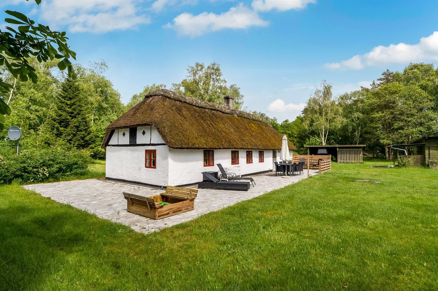 Reetgedecktes Bauernhaus in schöner Lage auf Læsø. Fahrt die gemütliche Einfahrt entlang des Birkenwaldes hinauf, wo ihr dieses authentische reetgedeckte Bauernhaus auf einem beeindruckend großen Grundstück von 10.500 m² mit Birkenwald und Garten rund ums Haus findet.