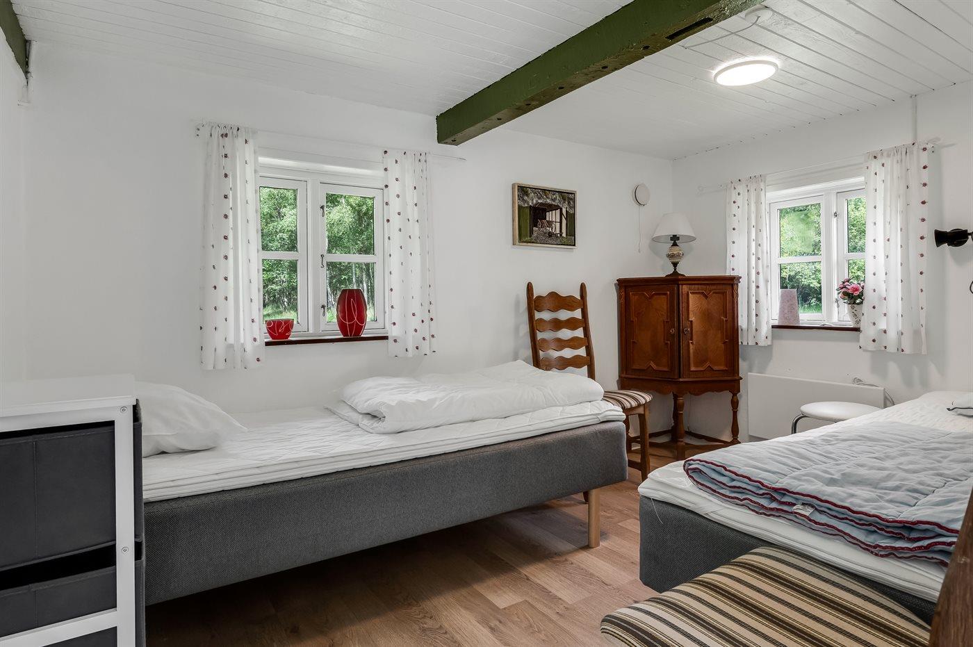 Die Schlafplätze verteilen sich auf 2 Schlafräume. 2 Schlafplätze in einem Doppelbett. 2 Schlafplätze in Einzelbetten.