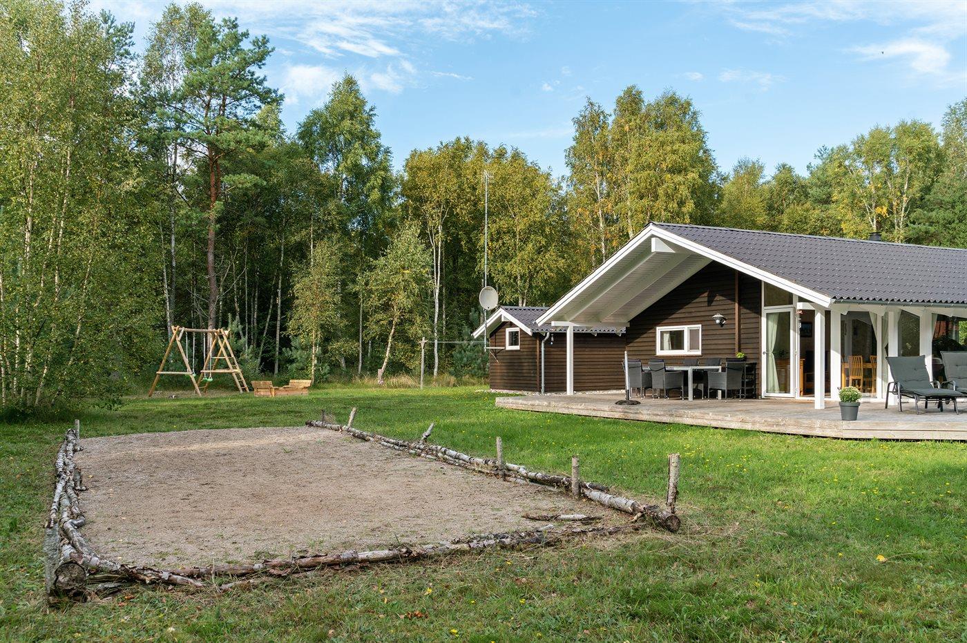 Die Ferienunterkunft liegt auf einem 5000 m² großen Naturgrundstück. Die Entfernung zum Meer beträgt 1500 m. Die nächste Einkaufsmöglichkeit liegt 3000 m entfernt. In einem Abstand von 1500 m gibt es einen Golfplatz. Es steht ein 60 m² Terrassenareal zur Verfügung. Außerdem gibt es 30 m² überdachte Terrasse. Geräteraum. Schaukel. Sandkasten. Petanque. Lagerfeuerstelle. Es steht ein Grill zur Verfügung. Parkplatz auf dem Grundstück.