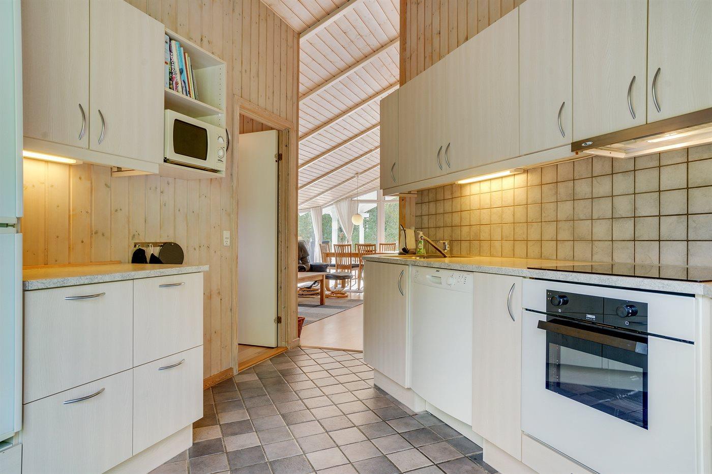 Die Küche ist mit Kühlschrank ausgestattet. Außerdem gibt es 4 Keramik-Kochfelder, Backofen, Umluftofen, Mikrowelle sowie Geschirrspüler. Fußbodenheizung in der Küche.