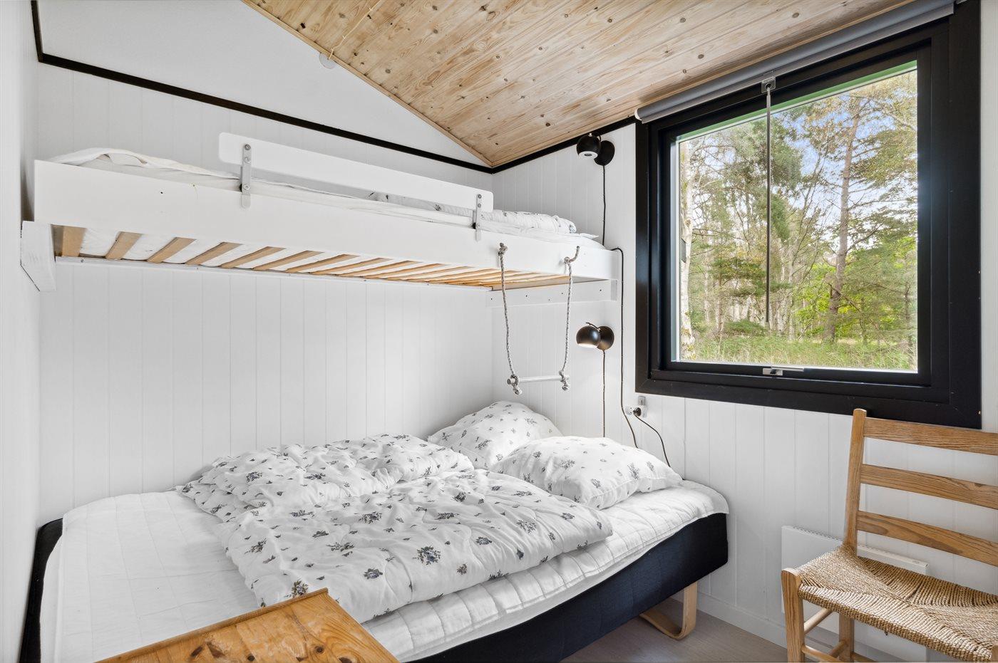 Die Schlafplätze verteilen sich auf 3 Schlafräume. 2 Schlafplätze in einem Doppelbett. 4 Schlafplätze in Etagenbetten. 2 Schlafplätze auf einer Doppelschlafcouch.