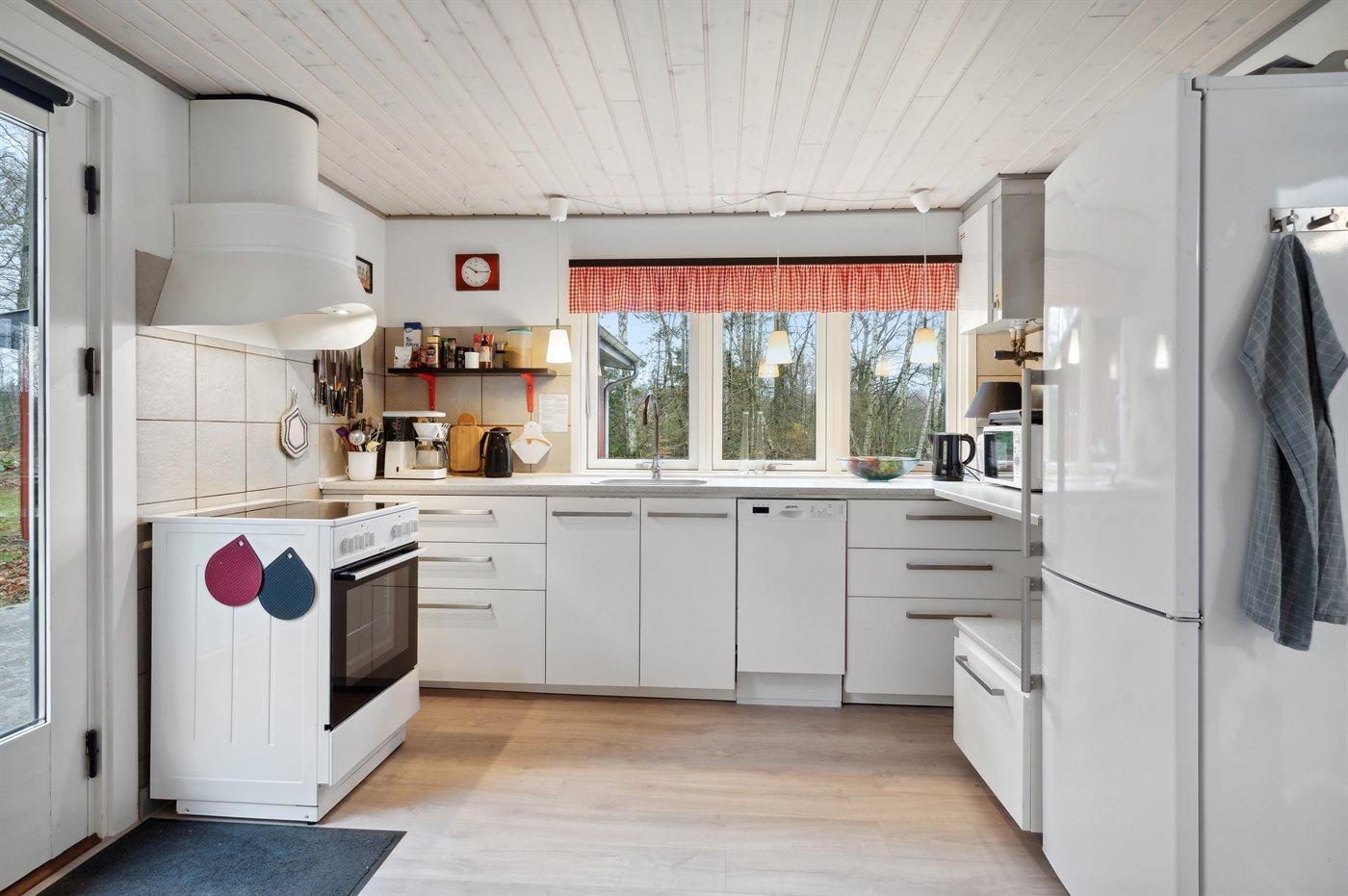 Die Küche ist mit Kühlschrank ausgestattet. Außerdem gibt es 4 Keramik-Kochfelder, Umluftofen sowie Geschirrspüler.