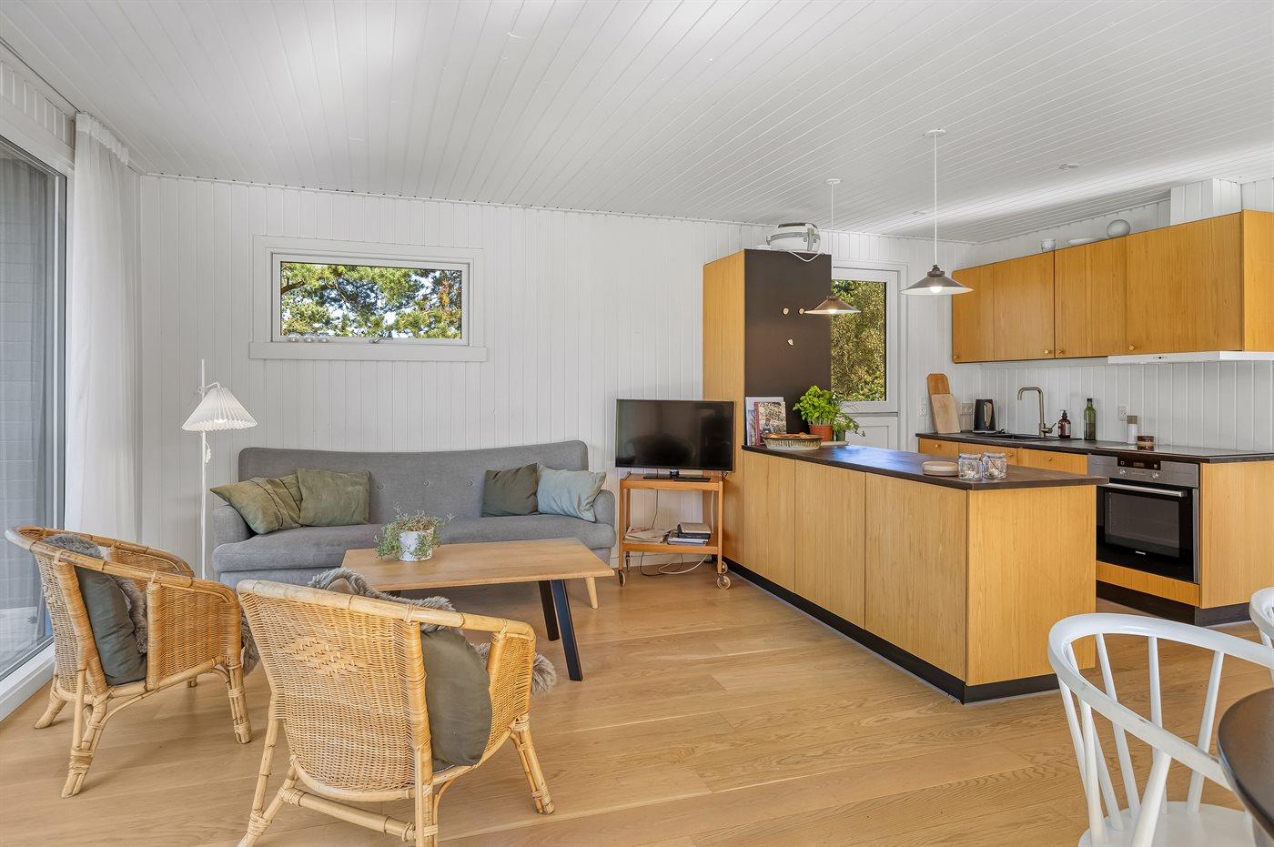 Das gut eingerichtete Ferienhaus wurde 2021 im nordischen Stil renoviert und hat eine gute Lage in Meeresnähe. Das Wohnzimmer und die gut ausgestattete Küche bilden den Mittelpunkt des Hauses. Der Terrassenbereich bietet sowohl abgeschirmte, überdachte als auch völlig offene Bereiche.