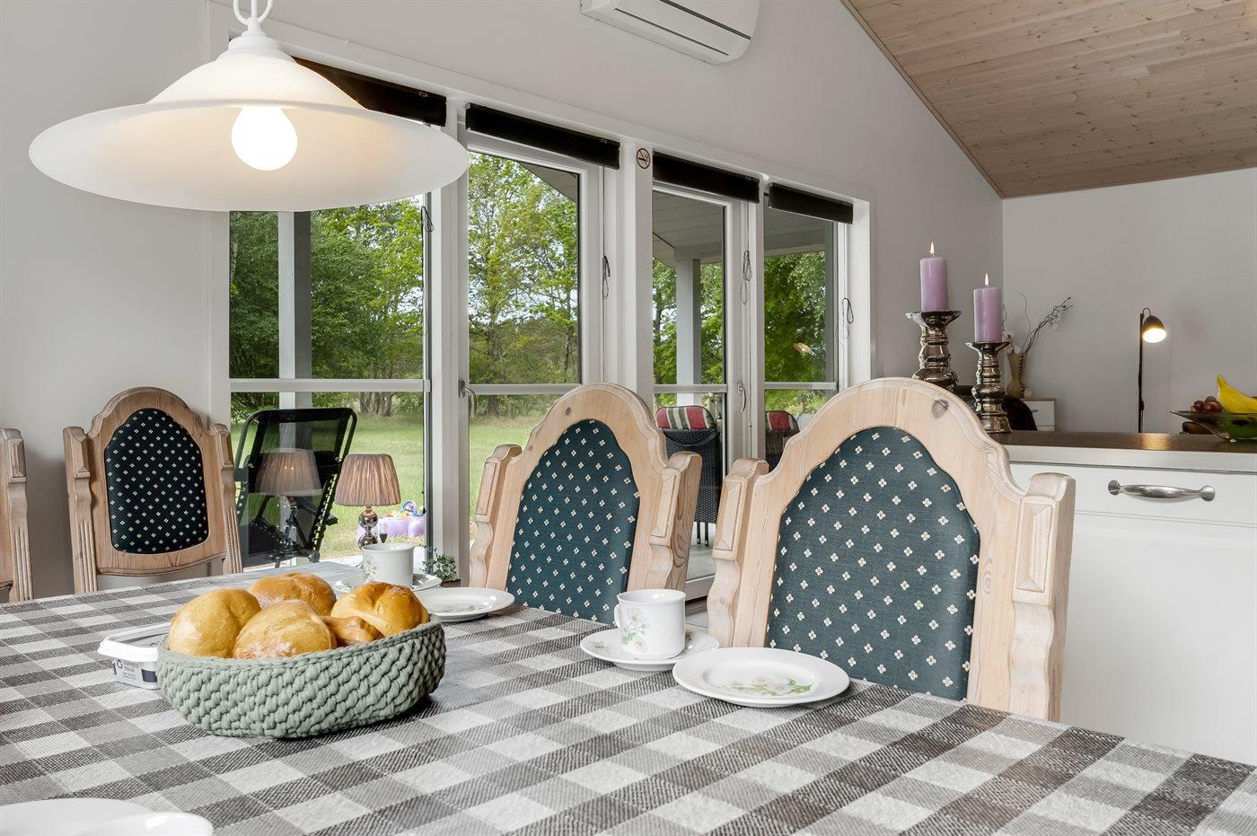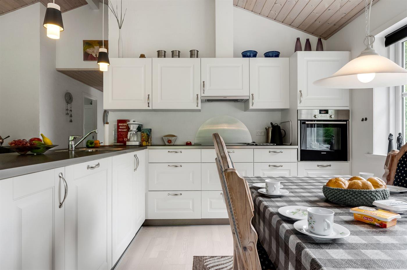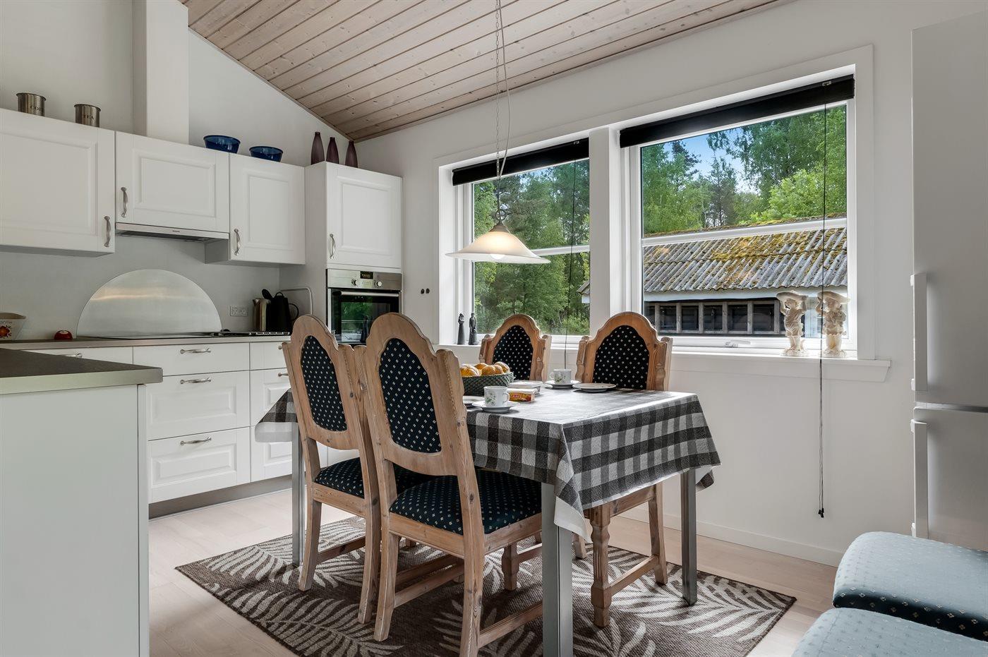 Das Ferienhaus ist geschmackvoll eingerichtet und verfügt über drei großzügige Schlafzimmer mit bequemen Betten. Die offene, gut ausgestattete Küche ist mit dem Wohn- und Essbereich kombiniert. Ein großes Fenster sorgt für viel Tageslicht und schafft eine helle, einladende Atmosphäre in dem zentralen Raum des Hauses – dem Ort, an dem ihr gemeinsam kochen, Brettspiele spielen oder einfach nur die Zeit miteinander genießen könnt.
