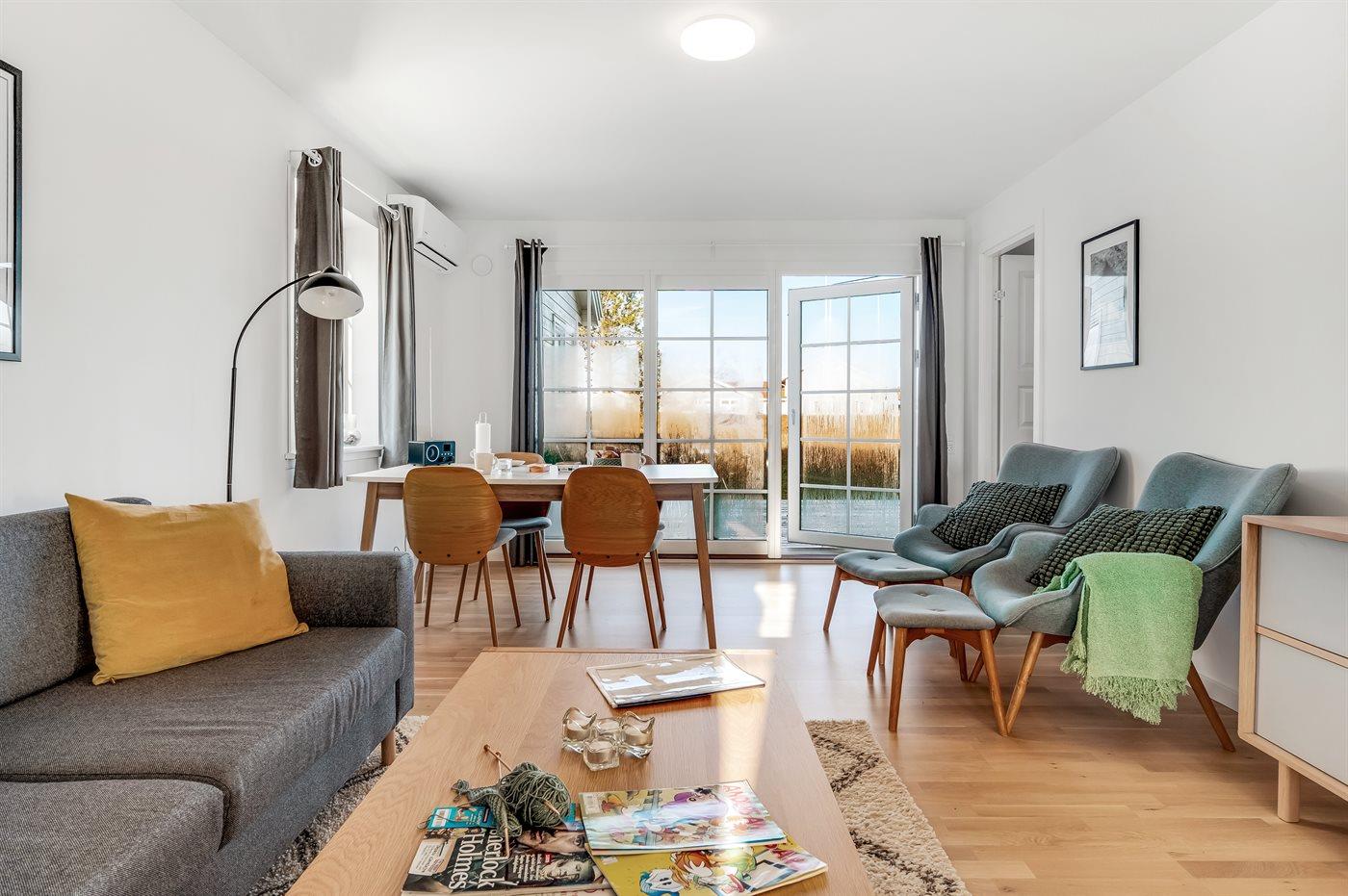 Moderne Ferienwohnung im Læsø Golf Resort mit Terrasse und Golfplatzblick für Erholung und Aktivurlaub.