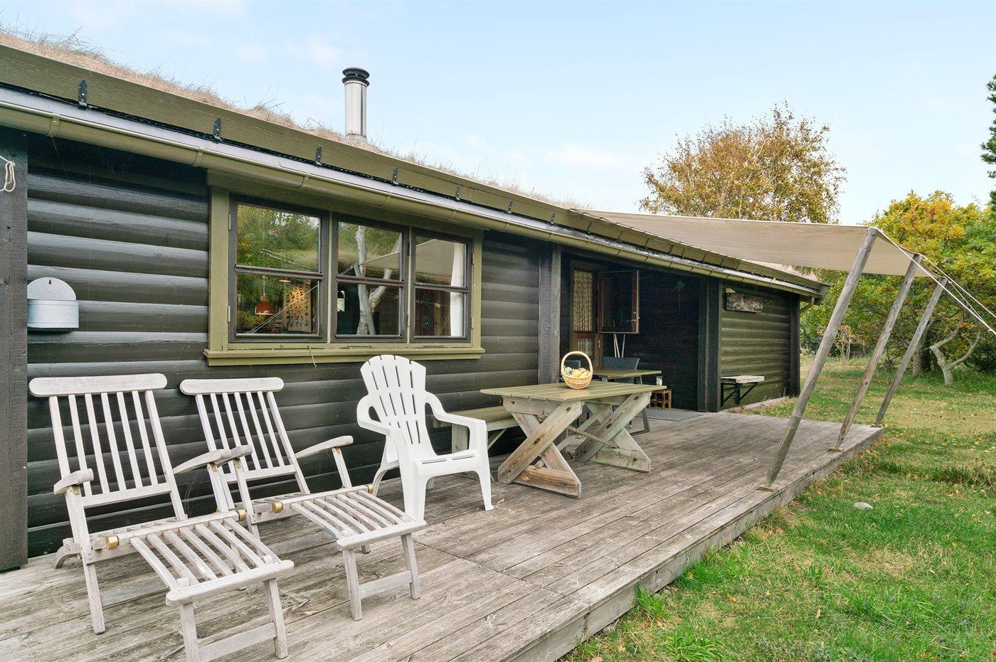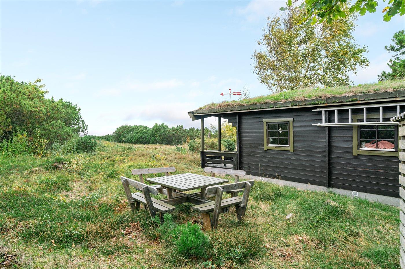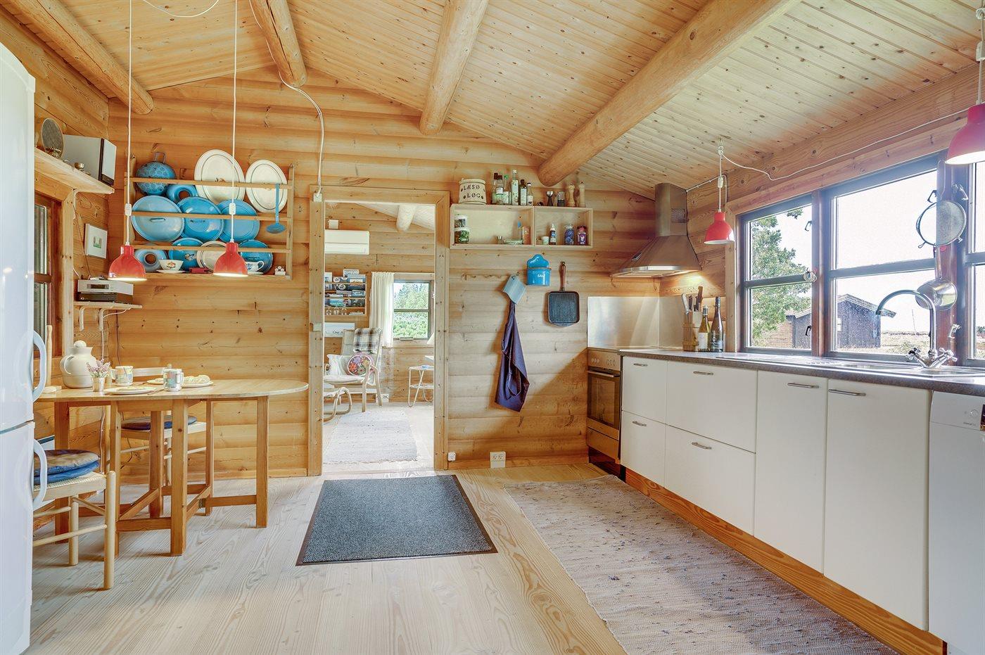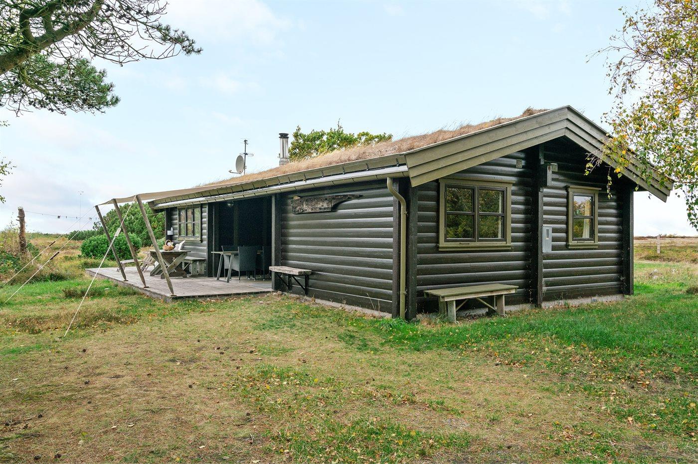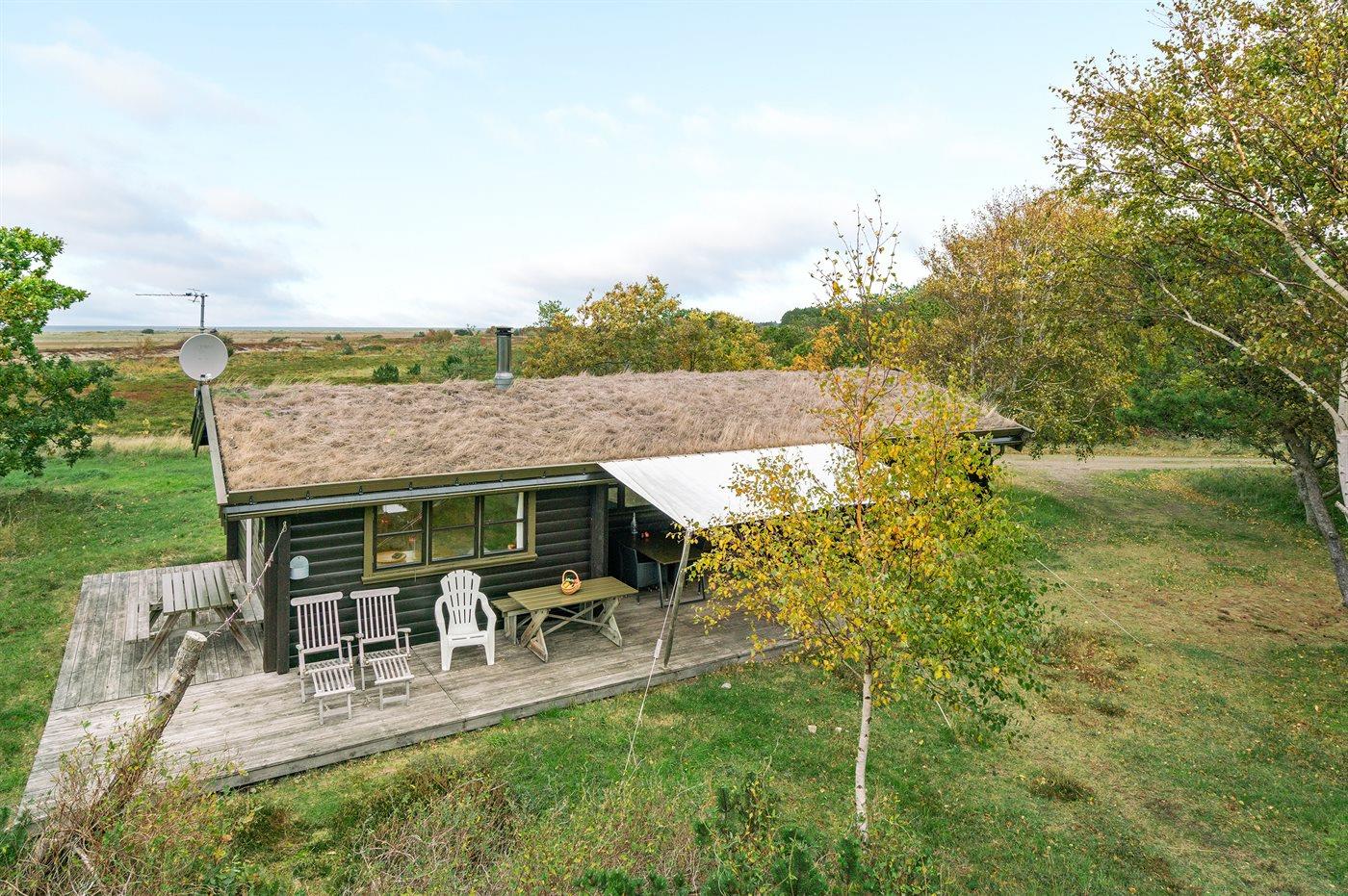 In naturschöner Umgebung liegt dieses Ferienhaus. Ein urgemütliches Blockhaus. Nah an Læsøs bestem Dünen- und Sandstrand. Einzigartige, schöne Lage mit prachtvoller Aussicht über die Heide zur Inselkante und auf das Meer in der Ferne.