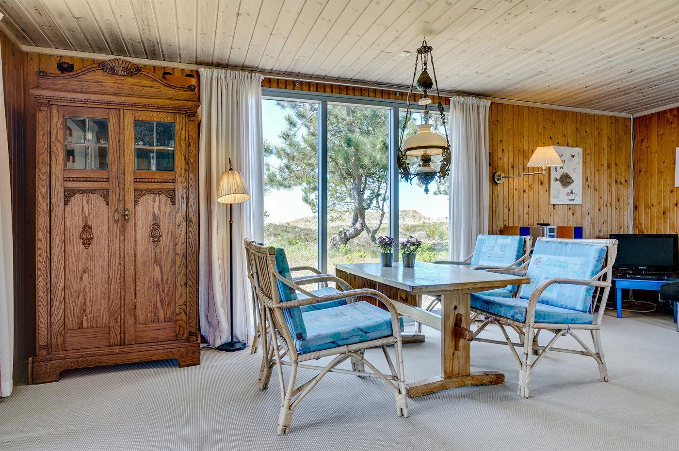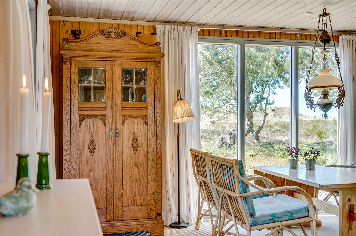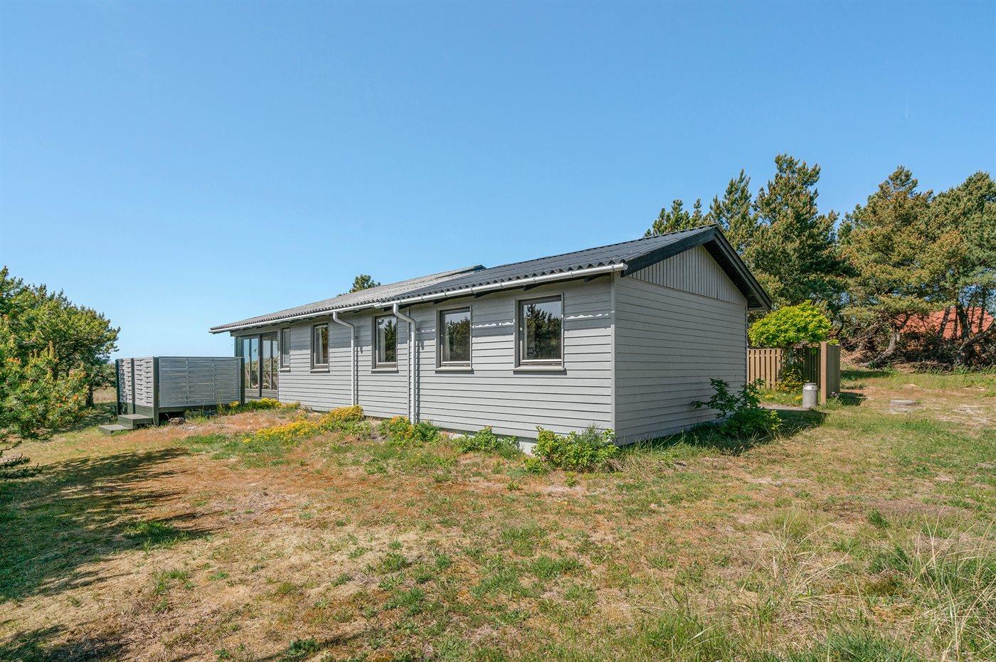 Dieses ältere Ferienhaus mit gemütlicher, praktischer Einrichtung hat eine einmalig schöne Lage. Von der hellen Glasveranda hat man etwas Meerblick. Das Grundstück liegt direkt hinter den Dünen und gleich am schönsten Sand- und Badestrand. 2 Betten mit Zugang vom Innenhof.