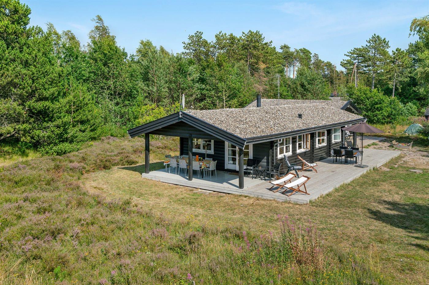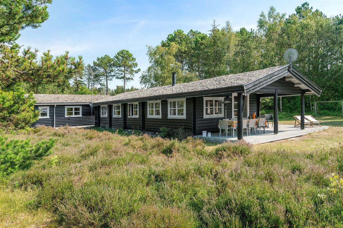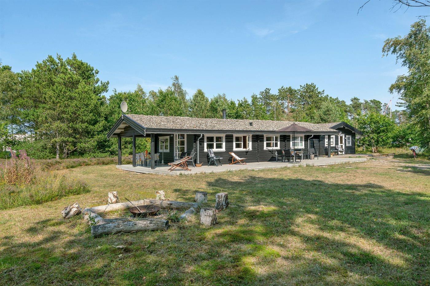 Wunderschönes, rustikales Blockhaus auf einem großen, einladenden Naturgrundstück mit Heidekraut und Kiefern. Das Grundstück bietet Meerblick. Das Haus liegt in einer sehr attraktiven Gegend, mit vielen Pfaden und schönen Spaziermöglichkeiten und in der Nähe des Strandes.
