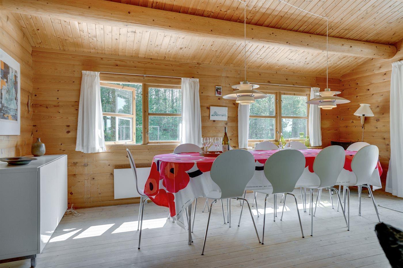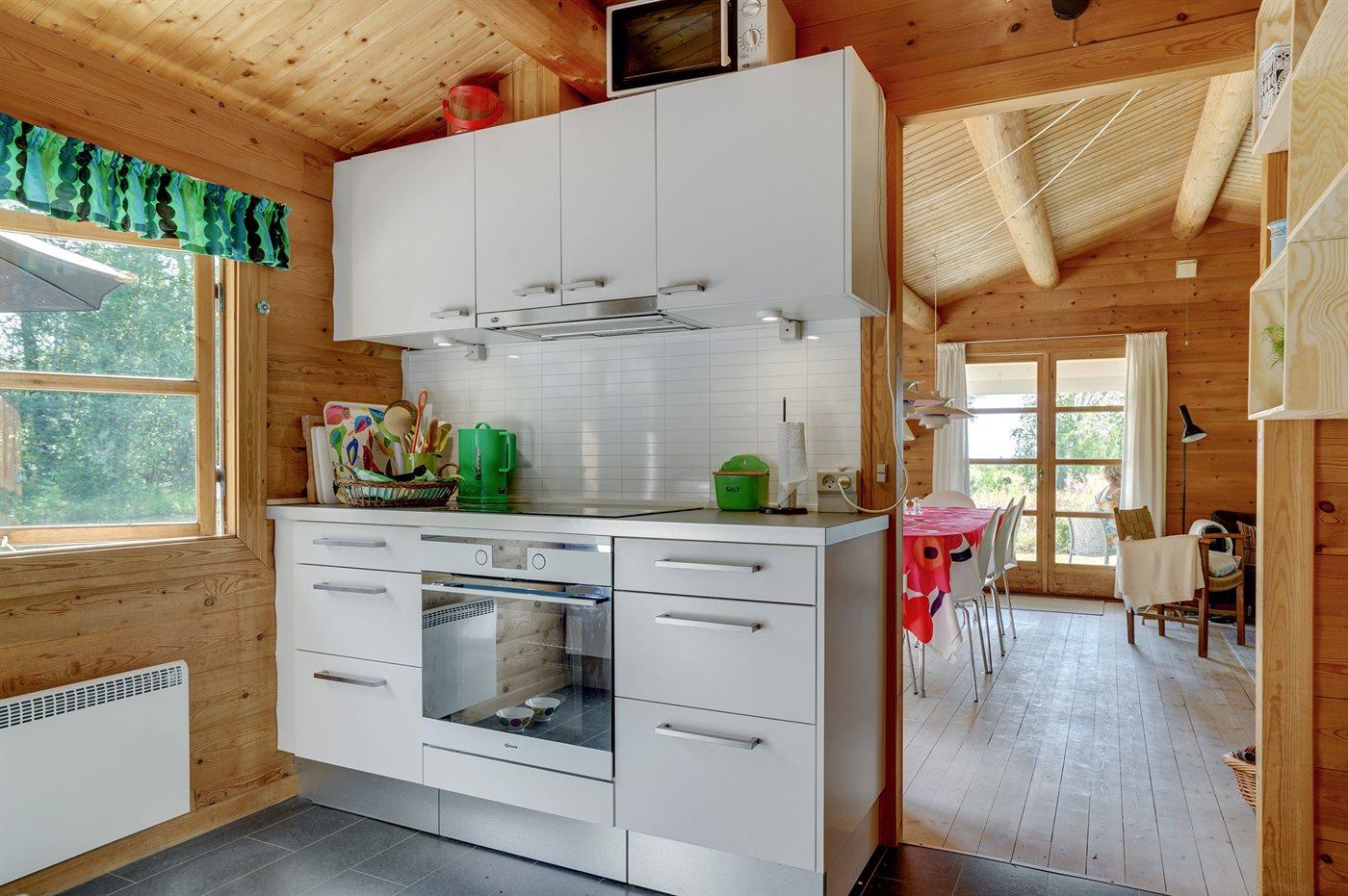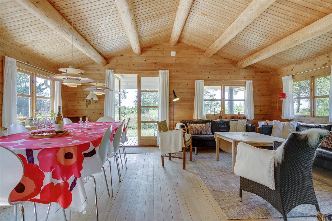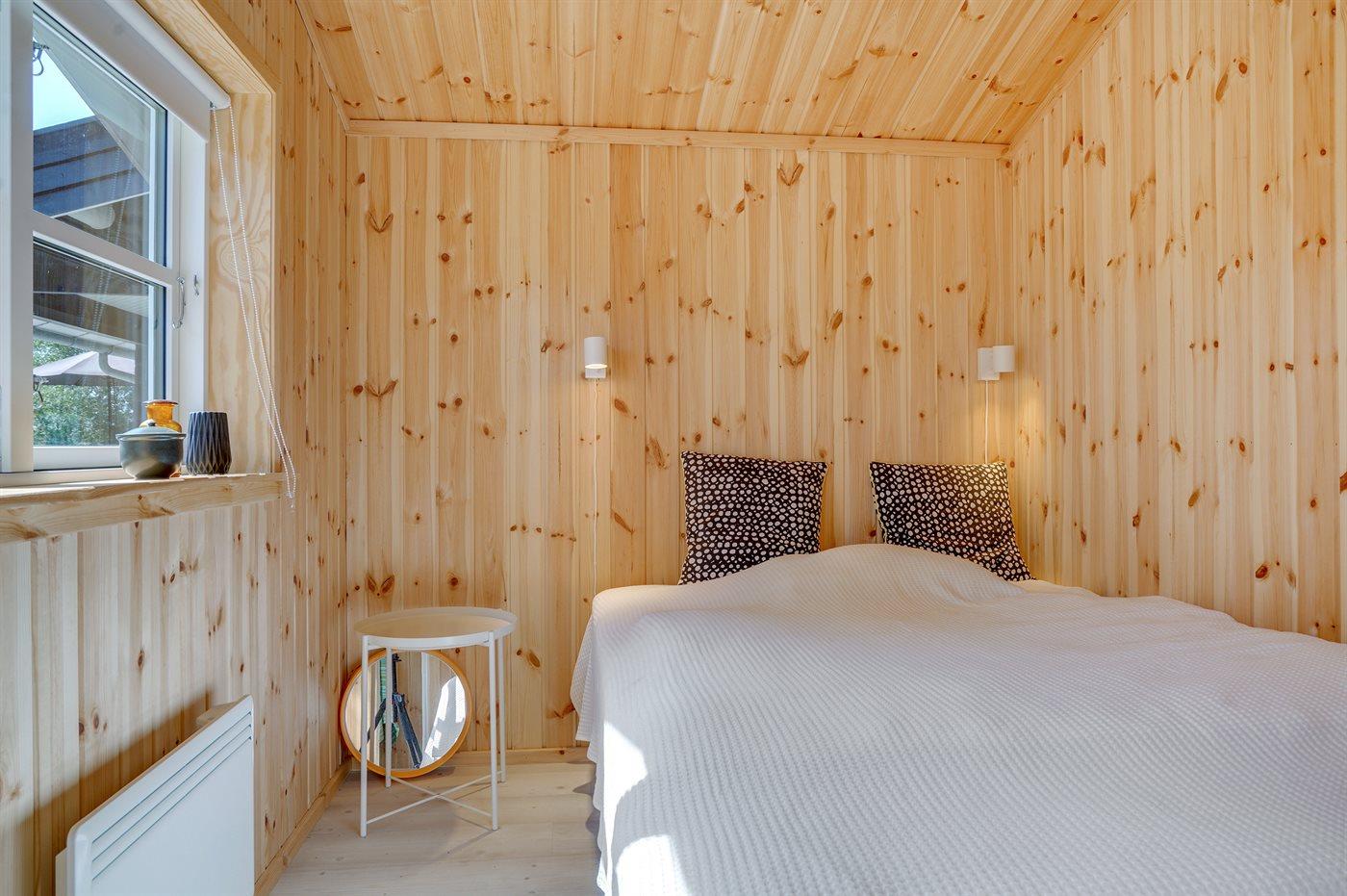 Die Ferienunterkunft ist 116 m² groß und besteht aus einem Haupthaus aus dem Jahr 1983, das 2012 modernisiert wurde, und einem Gästehaus aus dem Jahr 2019 mit eigener Toilette und Dusche. Die 5 Schlafzimmer sind aufgeteilt, es befinden sich 2 davon im Ferienhaus und 3 im Gästehaus. 4 der Schlafzimmer haben Doppelbetten und 1 hat zwei Einzelbetten. Es gibt einen Holzofen, eine Waschmaschine, einen Trockner und eine Gefriertruhe mit einem Fassungsvermögen von 40 Litern. Die Küche ist mit Kühlschrank, Induktionsherd mit 4 Platten, Heißluftofen, Mikrowelle und Geschirrspüler ausgestattet. Das Sommerhaus verfügt über WLAN und 1 TV mit DVD-Player sowie mindestens 4 dänische, 4 schwedische und 4 deutsche Kanäle. Es gibt dort auch ein CD-Player.