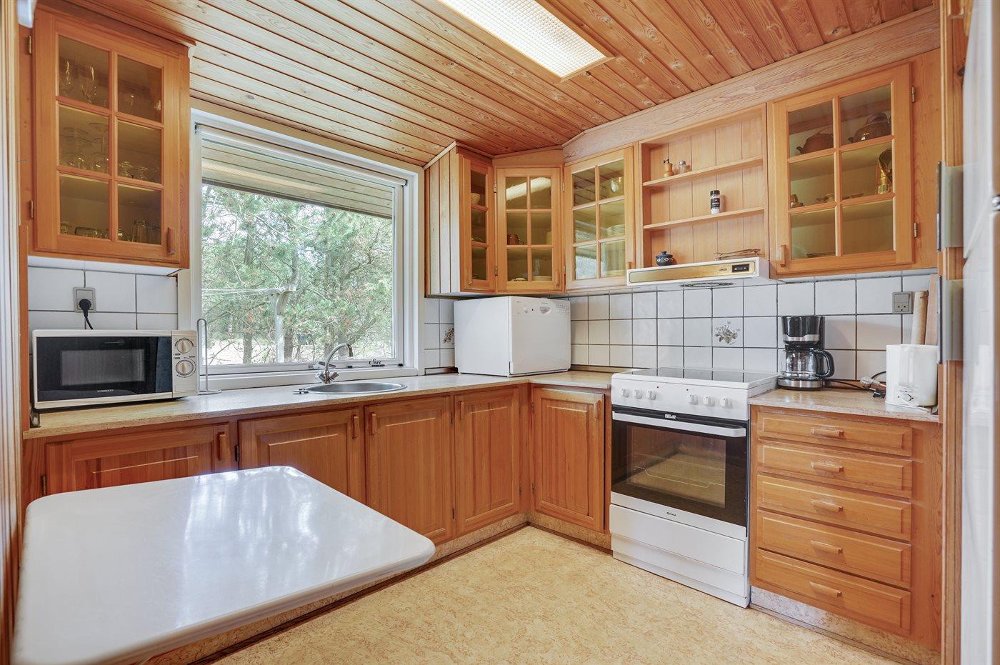 Die Küche ist mit Kühlschrank ausgestattet. Außerdem gibt es 4 Keramik-Kochfelder, Umluftofen, Mikrowelle. sowie Tisch-Geschirrspüler.