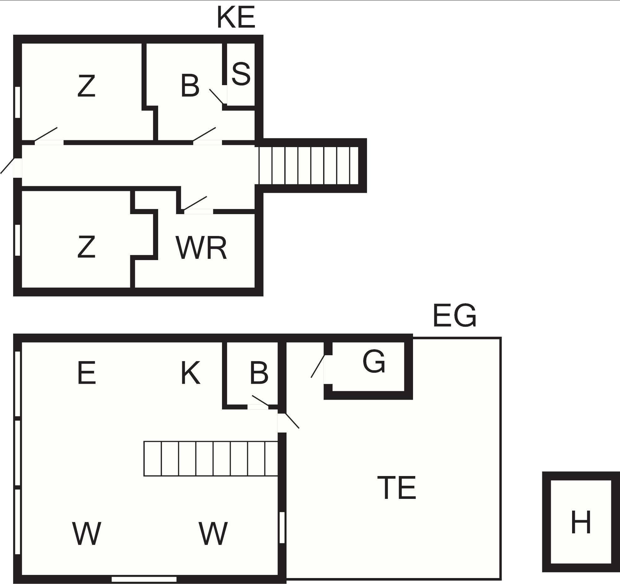 Bad: Waschm, Trockner, WC, Waschb., Dusche, Fußbodenheiz.