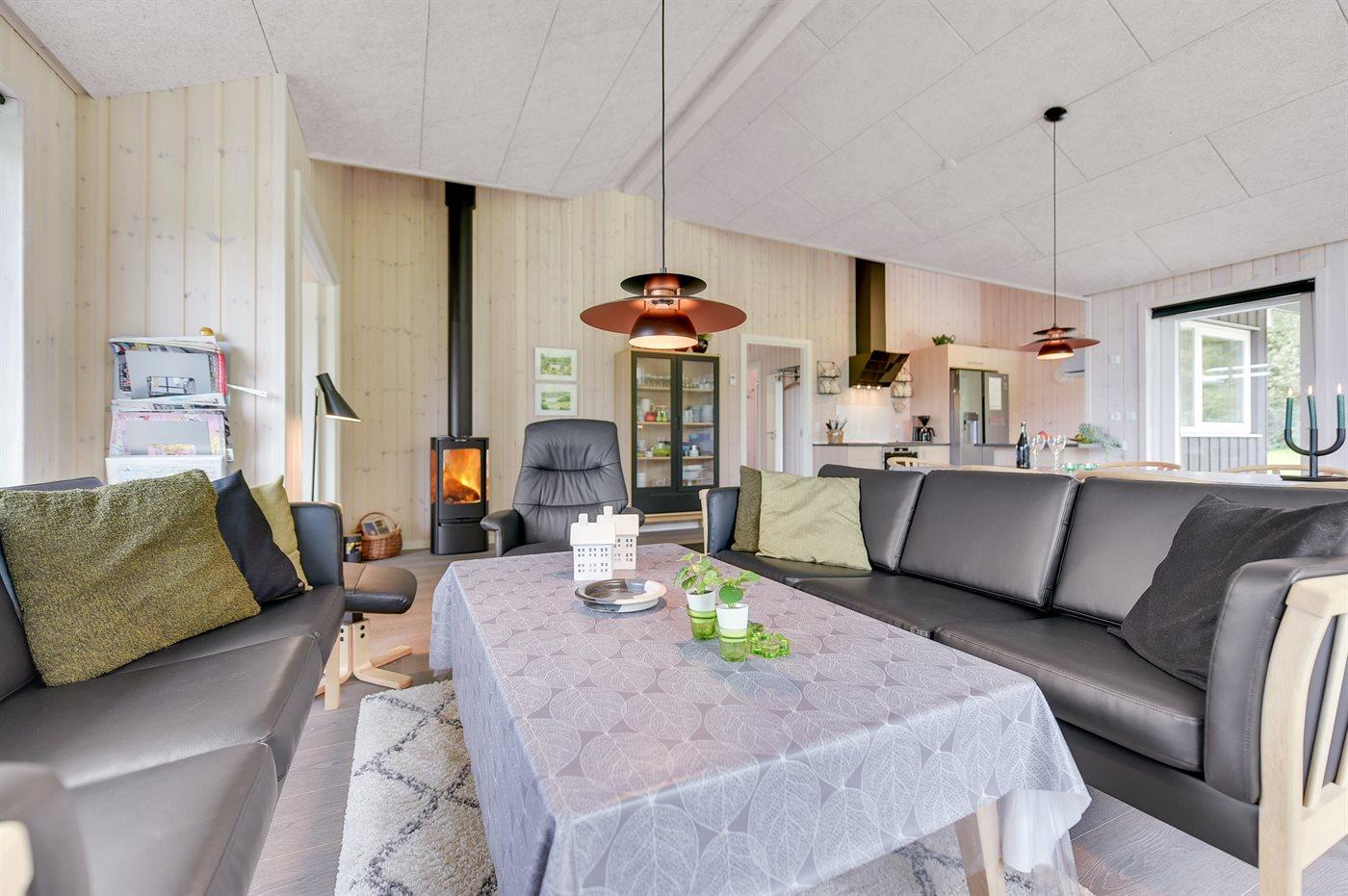 Das Ferienhaus eignet sich für 9 Personen. 2 der Schlafplätze eignen sich jedoch nur für größere Kinder (4-11 Jahre). Die Ferienunterkunft hat eine Wohnfläche von 126 m² und wurde 2021 gebaut. Haustiere dürfen nicht mitgebracht werden. Die Ferienunterkunft ist mit energiefreundlicher Luft-Wasser- Wärmepumpe ausgestattet. Fußbodenheizung im Wohnzimmer. Fußbodenheizung in der Diele. Fußbodenheizung im Flur. Fußbodenheizung im Wohnraum. Die Ferienunterkunft ist mit Waschmaschine ausgestattet. Wäschetrockner. Tiefkühlmöglichkeit mit 190 Liter Nutzinhalt. Es gibt außerdem einen Kaminofen. Für die jüngsten Feriengäste ist 1 Kinderhochstuhl vorhanden.