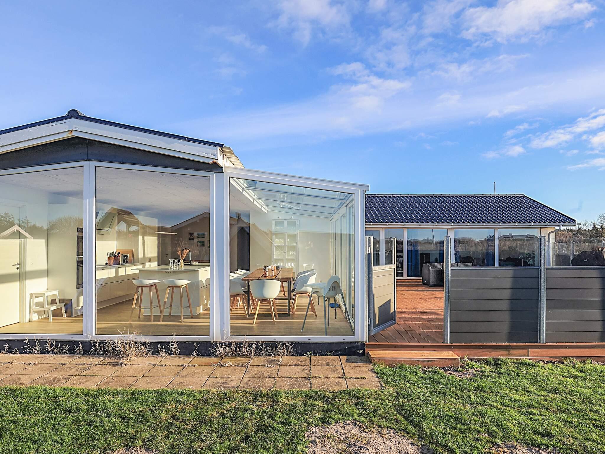 Helles und einladendes Ferienhaus mit Innen- und Außenwhirlpools in einem Ferienhausgebiet in der Nähe von Løkken und nur wenige Gehminuten vom Wasser entfernt.
