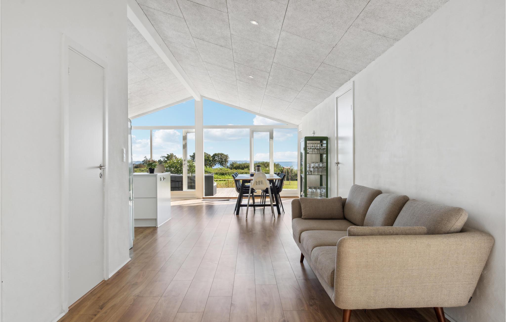 Modernes Ferienhaus mit Panoramablick und direktem Zugang zum Meer in Haarby, Dänemark.