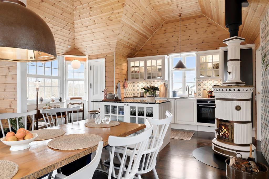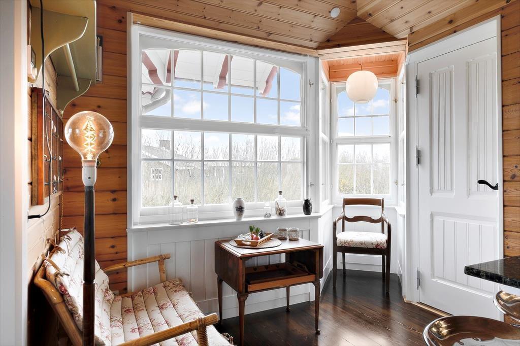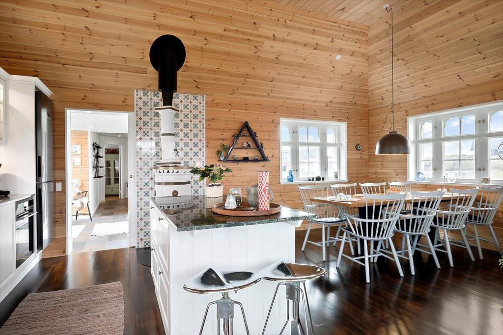 Draußen genießt du den Anblick des kleinen Turms, der gelben Dachziegel und der rot-weißen Fassade, während der moderne Anbau und das Nebengebäude dezent in Schwarz gehalten sind. Die Eingangstür von Hamenaburg ist eine getreue Kopie des Originals, und die Sprossenfenster haben Wölbscheiben, was ein schönes Lichtspiel erzeugt. Die alten Kacheln, die in der Küche und hinter dem Holzofen im Wohnzimmer zu sehen sind, sind die gleichen, die im nicht mehr existierenden Restaurant Kaiserhalle des Badeortes verwendet wurden, und dienen somit als schöne Erinnerung an die Vergangenheit von Lakolk.