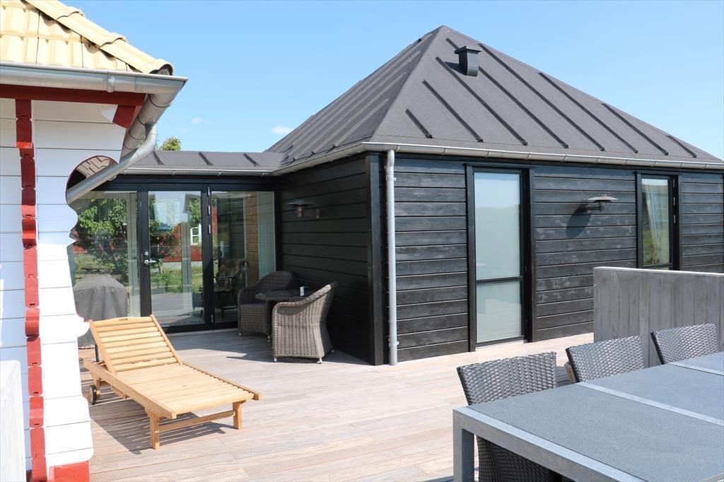 Nicht nur vom Eingang, sondern von allen Räumen im Anbau hast du direkten Zugang ins Freie, sodass du ganz bequem in die Sonne gelangen kannst. Rund um das Ferienhaus breitet sich eine herrliche Terrassenlandschaft mit vielen guten Sitzgelegenheiten aus. Darüber hinaus gibt es einen Petanque-Platz und einen Außenwhirlpool, eine Saunatonne, eine Kaltwasserbadewanne und eine Außendusche. Der Shelter gibt dir die Möglichkeit, tagsüber ein Nickerchen im Freien zu machen oder die Nacht an der frischen Meeresluft zu verbringen. Wenn du mit einem Elektroauto anreist, gibt es eine Ladestation am Haus.