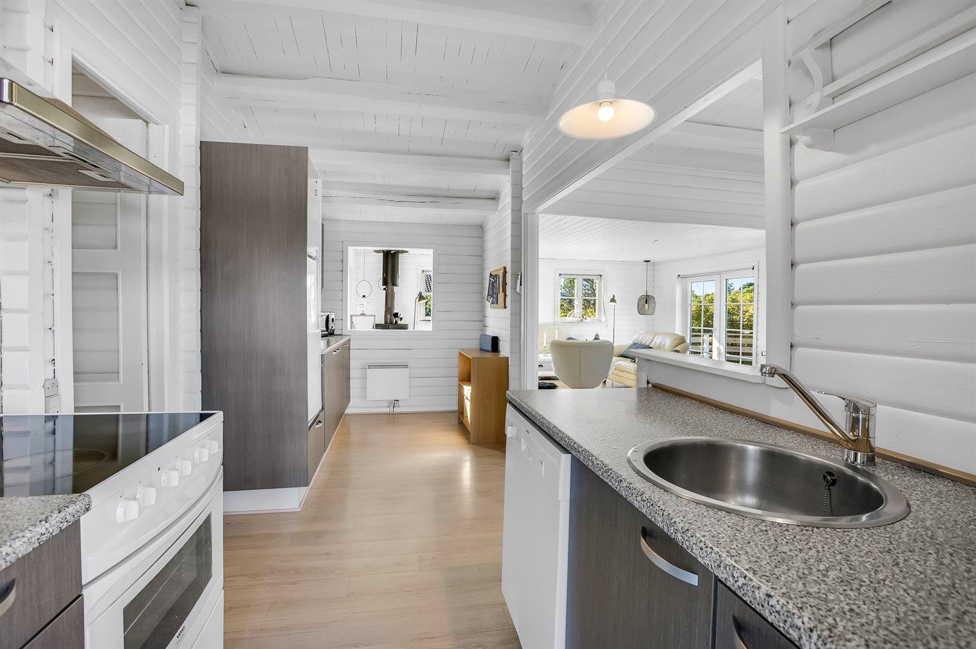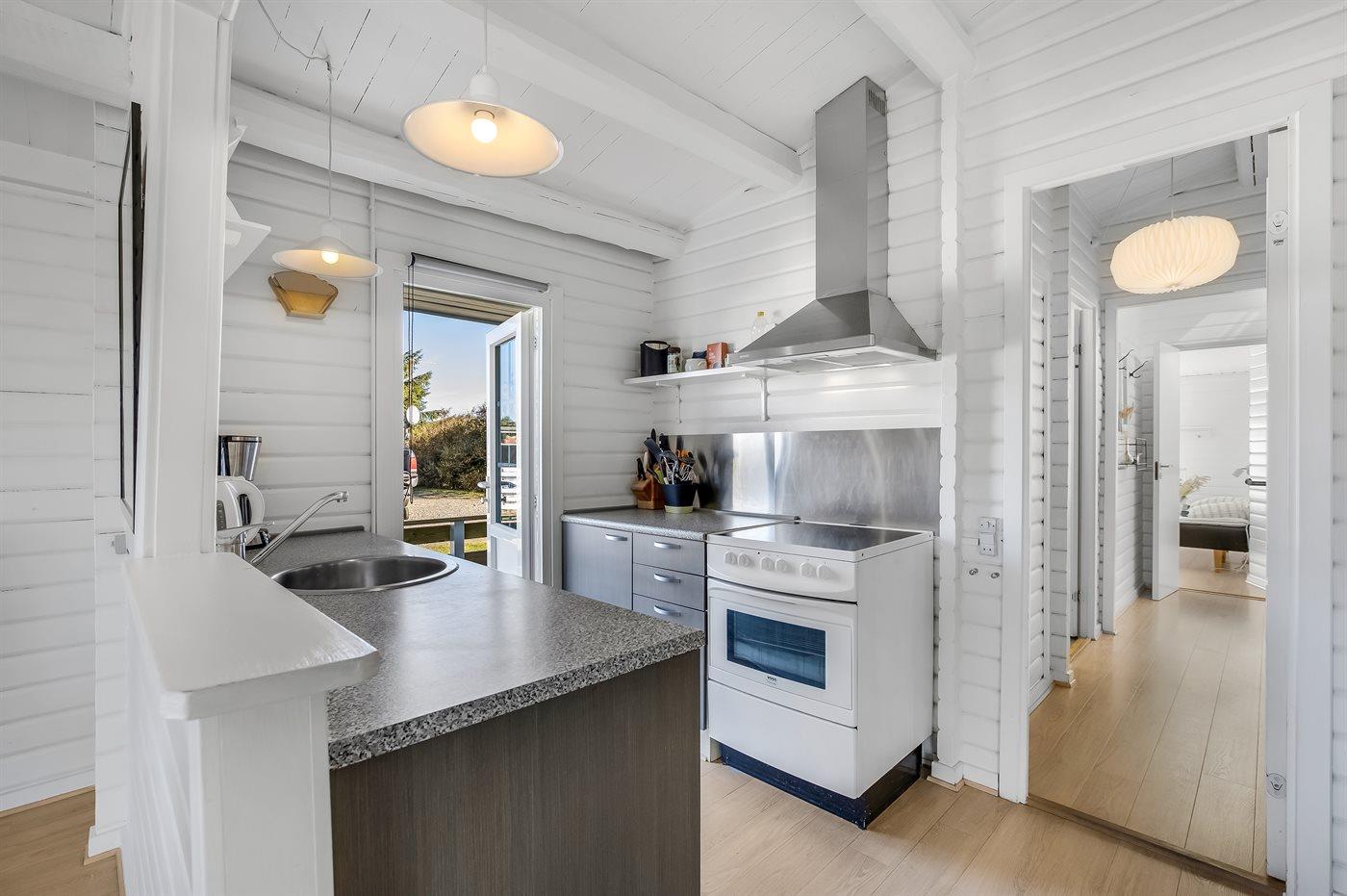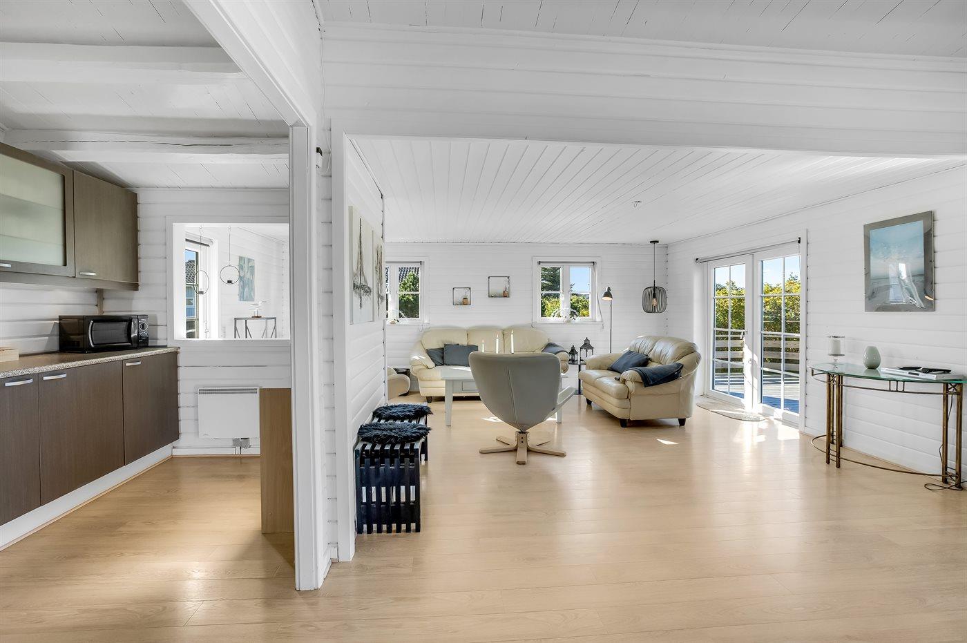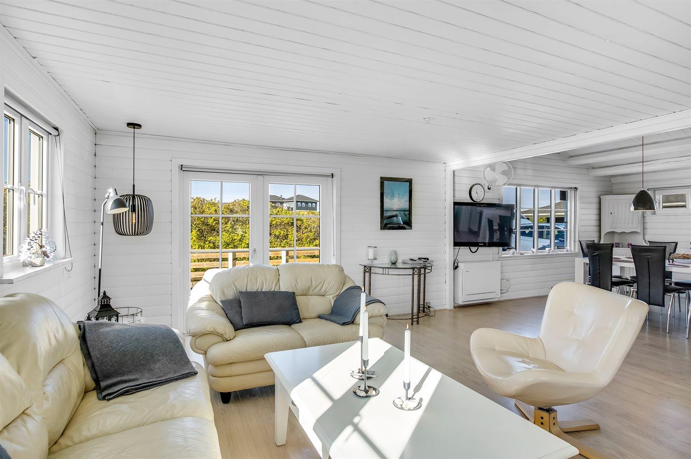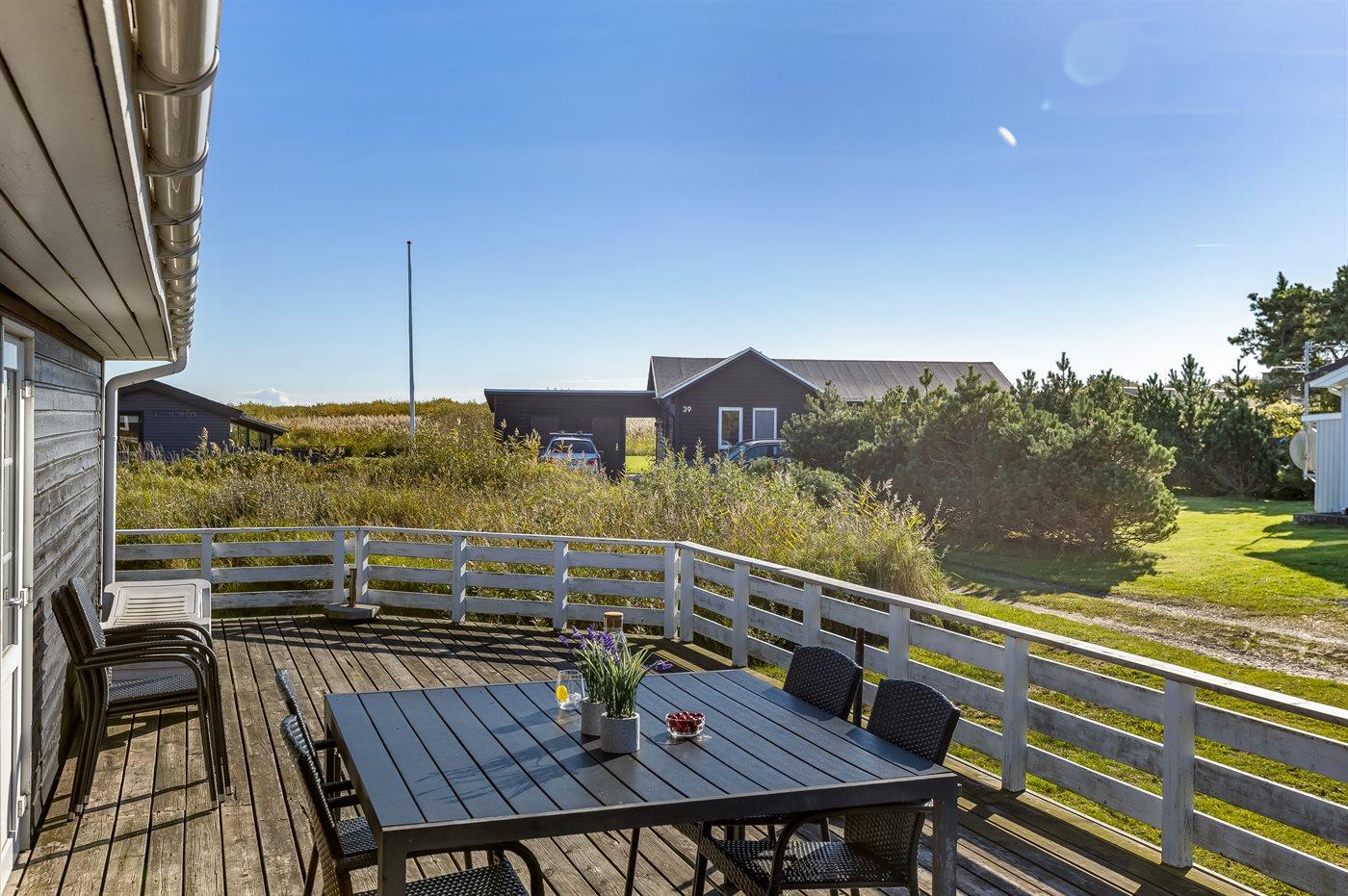 Nur 500 m vom schönen Strand entfernt finden Sie dieses hübsche Ferienhaus, das von einem schönen, großen und teilweise überdachten Terrassenareal umgeben ist.