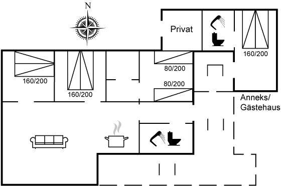 In der Ferienunterkunft gibt es 1 Fernseher mit Smart-TV. Radio. 1-3 dänische Fernsehsender. Mindestens 4 deutsche Fernsehsender. Es steht kabellose Internetverbindung zur Verfügung.