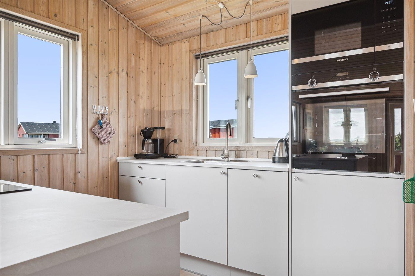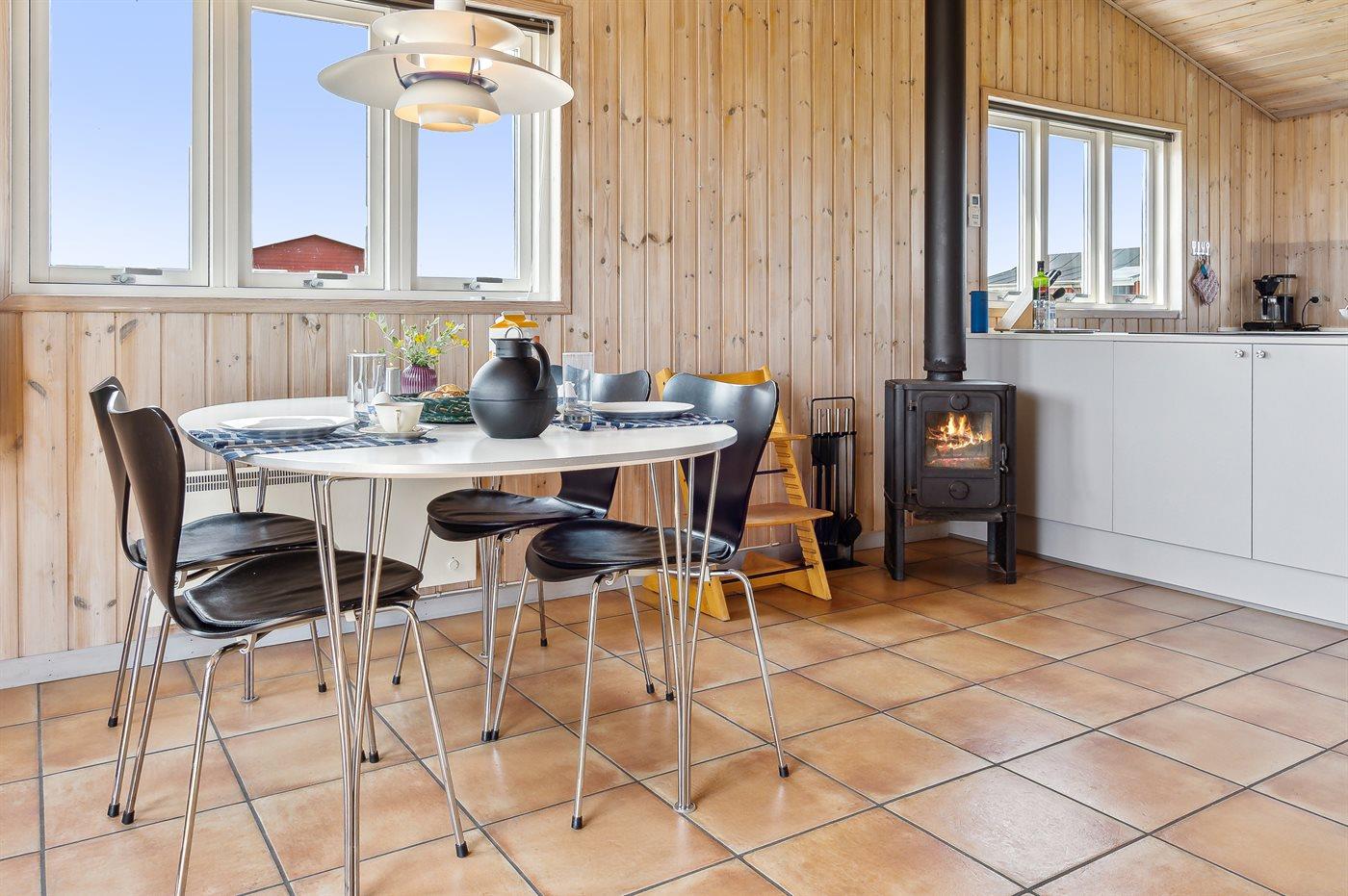 Zum Haus gehört eine zum Teil abgeschirmte Terrasse mit Gartenmöbeln. Innen sind die Wände mit hellem Holz verkleidet. Schönes Badezimmer mit Dusche und Waschmaschine. Die helle Küche ist mit dem Wohnzimmer kombiniert und u. a. mit Geschirrspüler, Umluftofen, Mikrowelle sowie Tiefkühlmöglichkeit mit 5 Liter Nutzinhalt ausgestattet. Das nett möblierte Wohnzimmer enthält Kaminofen, TV mit Satellitenanschluss und Chromecast. Ferner kostenlose ADSL-Internetverbindung vorhanden (Computer ist mitzubringen).