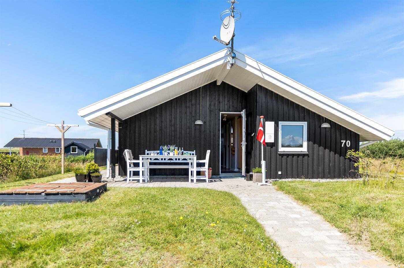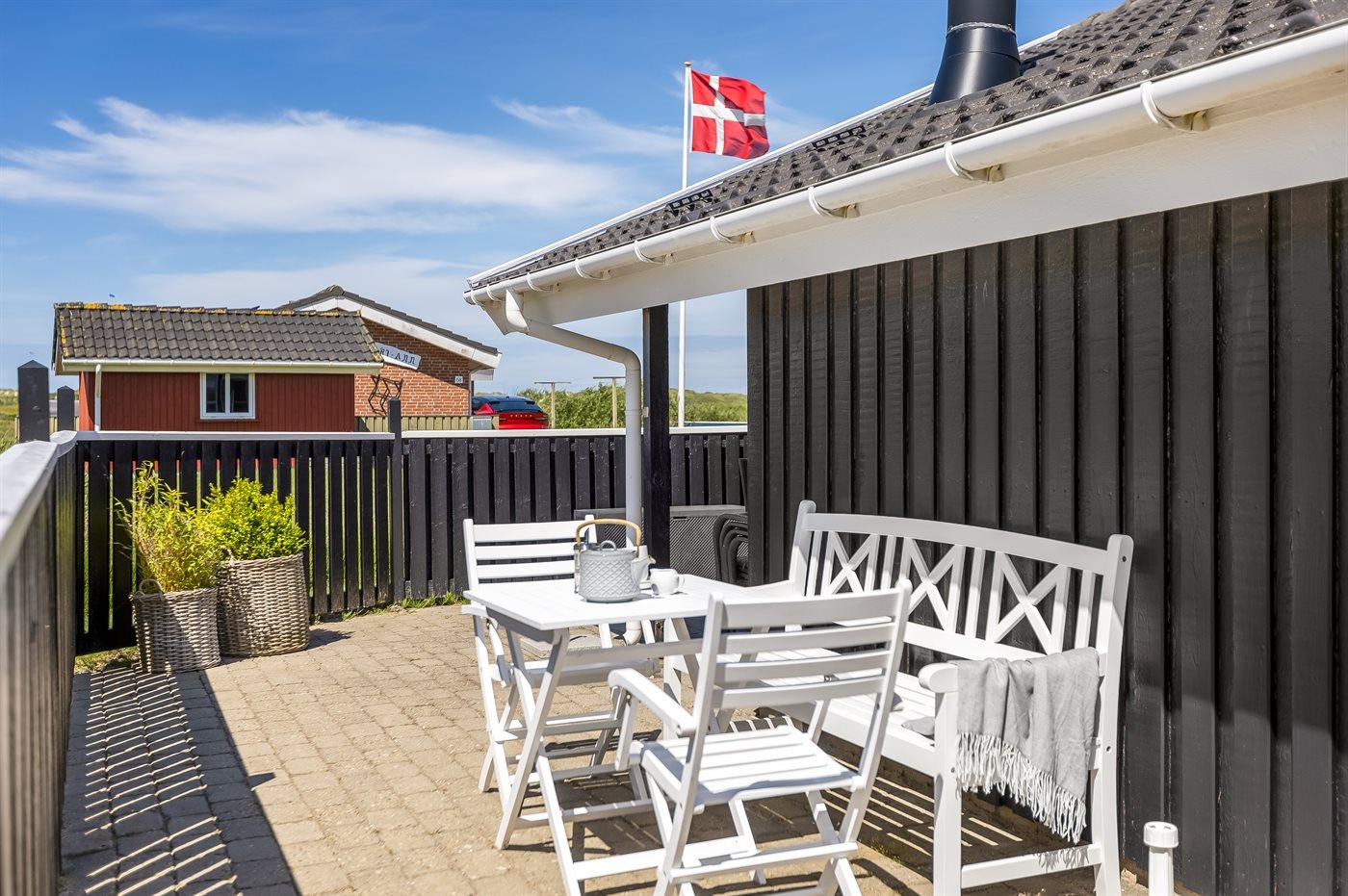 Ein gemütliches und gut ausgestattetes, schönes Holzferienhaus mit Whirlpool und Sauna. Das Haus, 1998 gebaut und 2015 modernisiert, liegt auf einem kinderfreundlichen Naturgrundstück in der zweiten Dünenreihe - in der Nähe vom Strand und mit einem herrlichen Blick über die Dünen und Lakolk. Es gibt die Möglichkeit, direkt über kleine Pfade zum Strand zu spazieren.