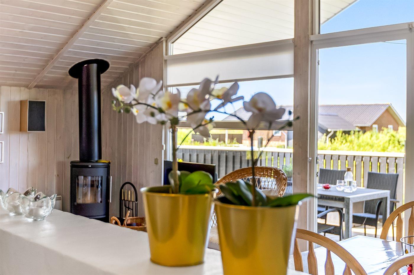 Das gemütliche Wohnzimmer ist mit einem Kaminofen, Radio, Stereoanlage mit CD-Player, Smart-TV, Chromecast und Satellitenanschluss ausgestattet. Es gibt mindestens 4 dänische und 4 deutsche sowie norwegische und schwedische Fernsehsender. WLAN steht zur Verfügung.