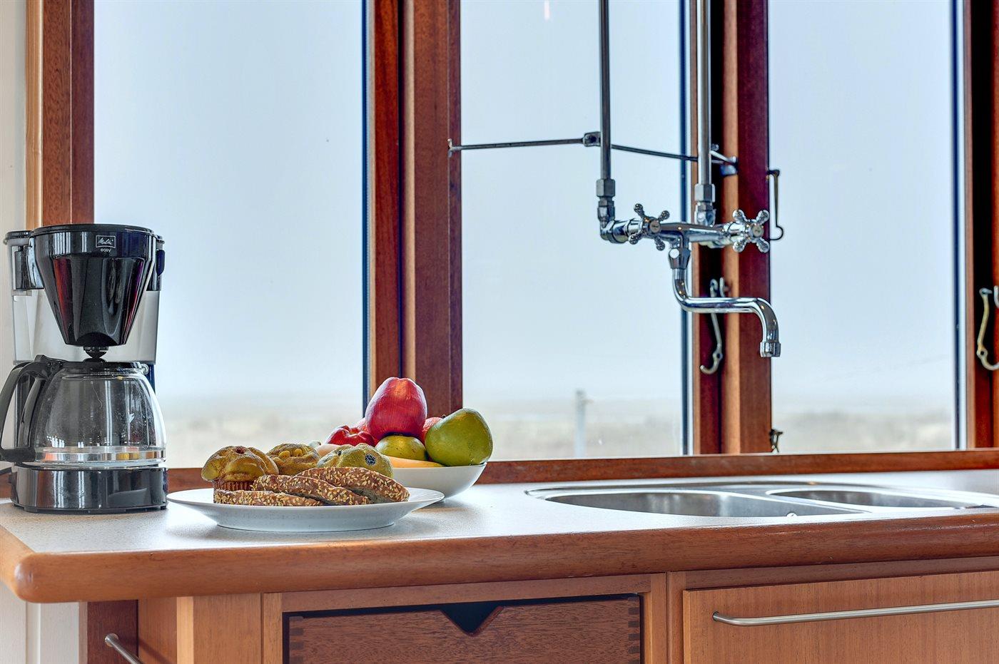 Ein gemütliches und gut eingerichtetes Ferienhaus mit 180 Grad Panoramaaussicht auf das Meer. Übrigens: Die 2 Schlafplätze auf Matratzen finden Sie im offenen Obergeschoss.