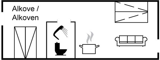 Diese, 30 m2 große Wohnung ist für 2 Personen eingerichtet - 2 der Schlafplätze eignen sich jedoch nur für größere Kinder (4-11 Jahre). Es gibt Badezimmer mit Dusche, Küche mit u. a. Mikrowelle und 2 Elektro Kochplatten, Wohnzimmer mit Radio, TV und Gemeinschaftsantenne. Ferner kostenlose, kabellose Internetverbindung vorhanden (Computer ist mitzubringen). Die Schlafplätze verteilen sich auf ein Alkoven mit Doppelbett und 2 Schlafplätze auf einer Doppelschlafcouch im Wohnzimmer.