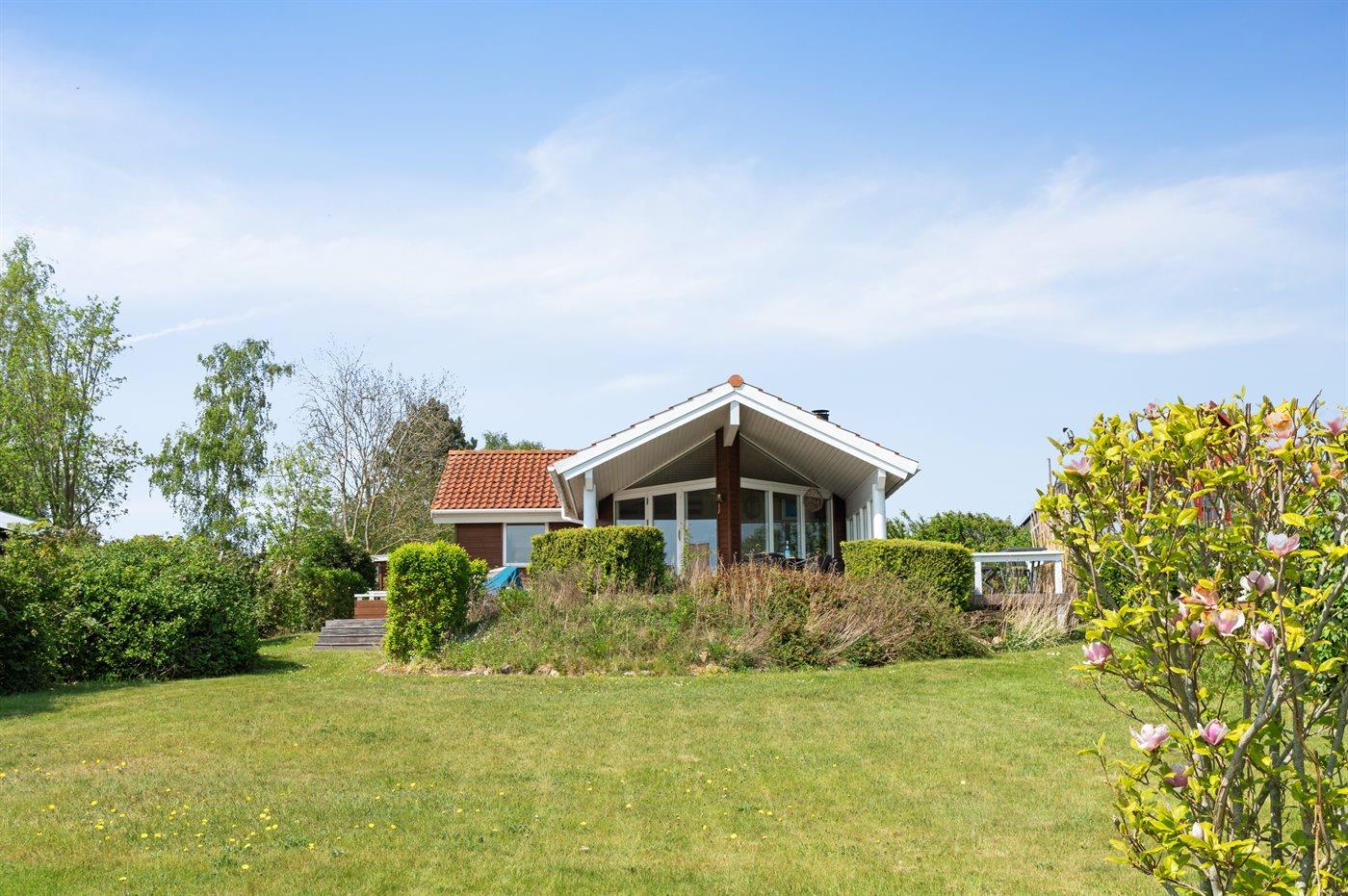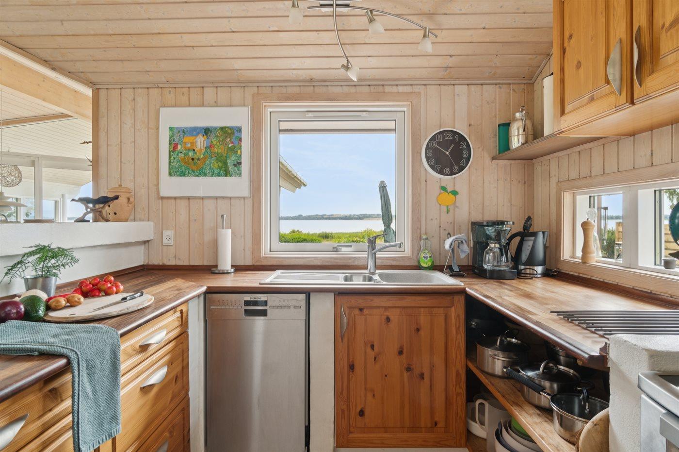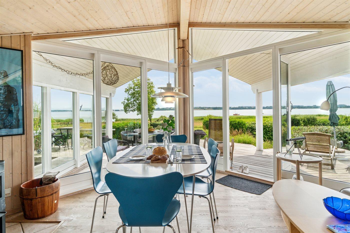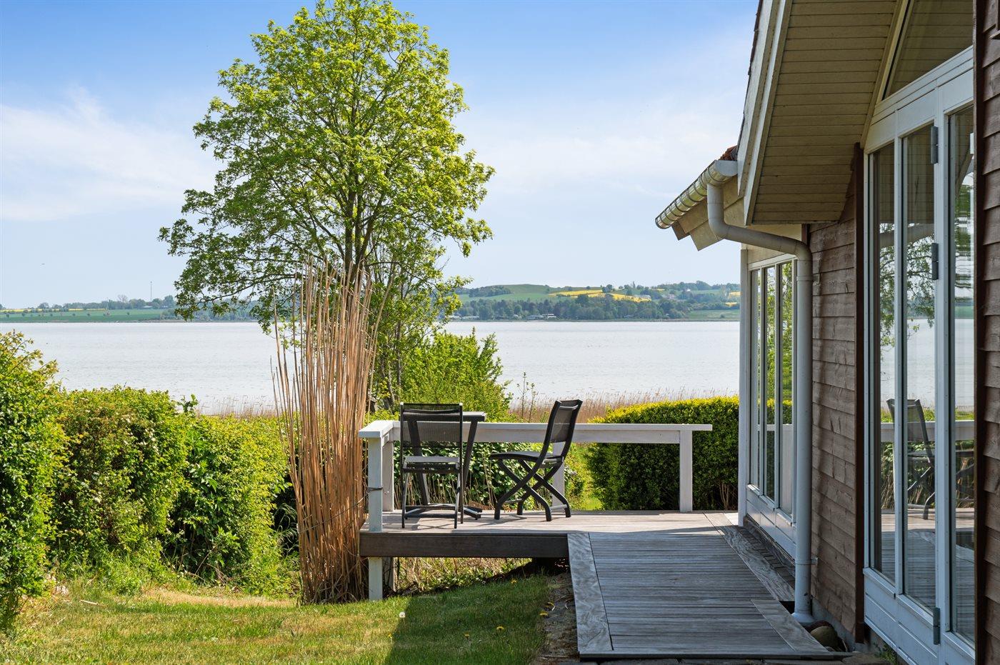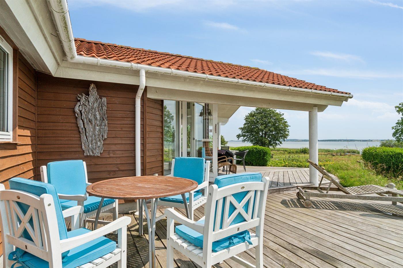 Panoramablick auf den Lammefjord, kinderfreundlich, mit Terrasse und Kaminofen, ideal für naturnahe Erholung in Dänemark.