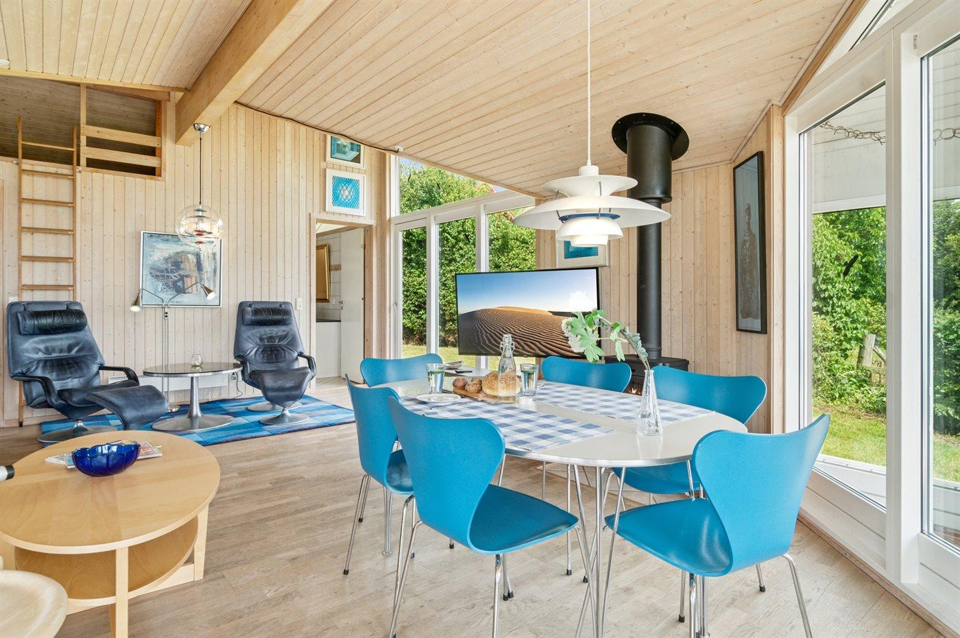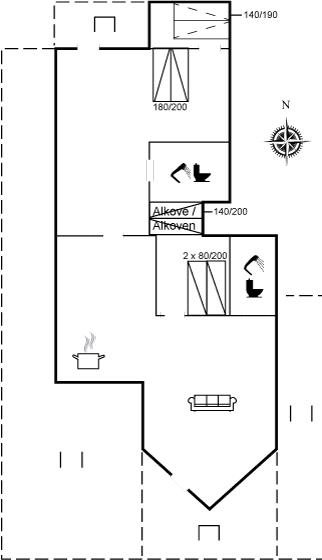 Das Haus eignet sich für 8 Gäste sowie 1 Kind von 0-3 Jahren und 1 Haustier. Es ist mit einem großen Gemeinschaftsbereich eingerichtet, der Küche, Wohnzimmer und Essplatz vereint und einen beeindruckenden Ausblick auf den Fjord und die Landschaft von Tuse Næs bietet. Die Schlafplätze verteilen sich auf 3 Schlafzimmer: 1 mit Doppelbett, 1 mit Doppelbett und einem Alkoven (4 Schlafplätze insgesamt) und 1 mit einer Schlafcouch für zwei Personen, die aufgrund der Matratzenmaße von 140x190 cm am besten für Kinder und Jugendliche geeignet ist. Es gibt 2 Badezimmer, beide mit Duschnische und Fußbodenheizung. Eine Waschmaschine steht ebenfalls zur Verfügung.