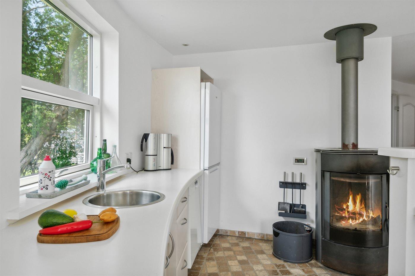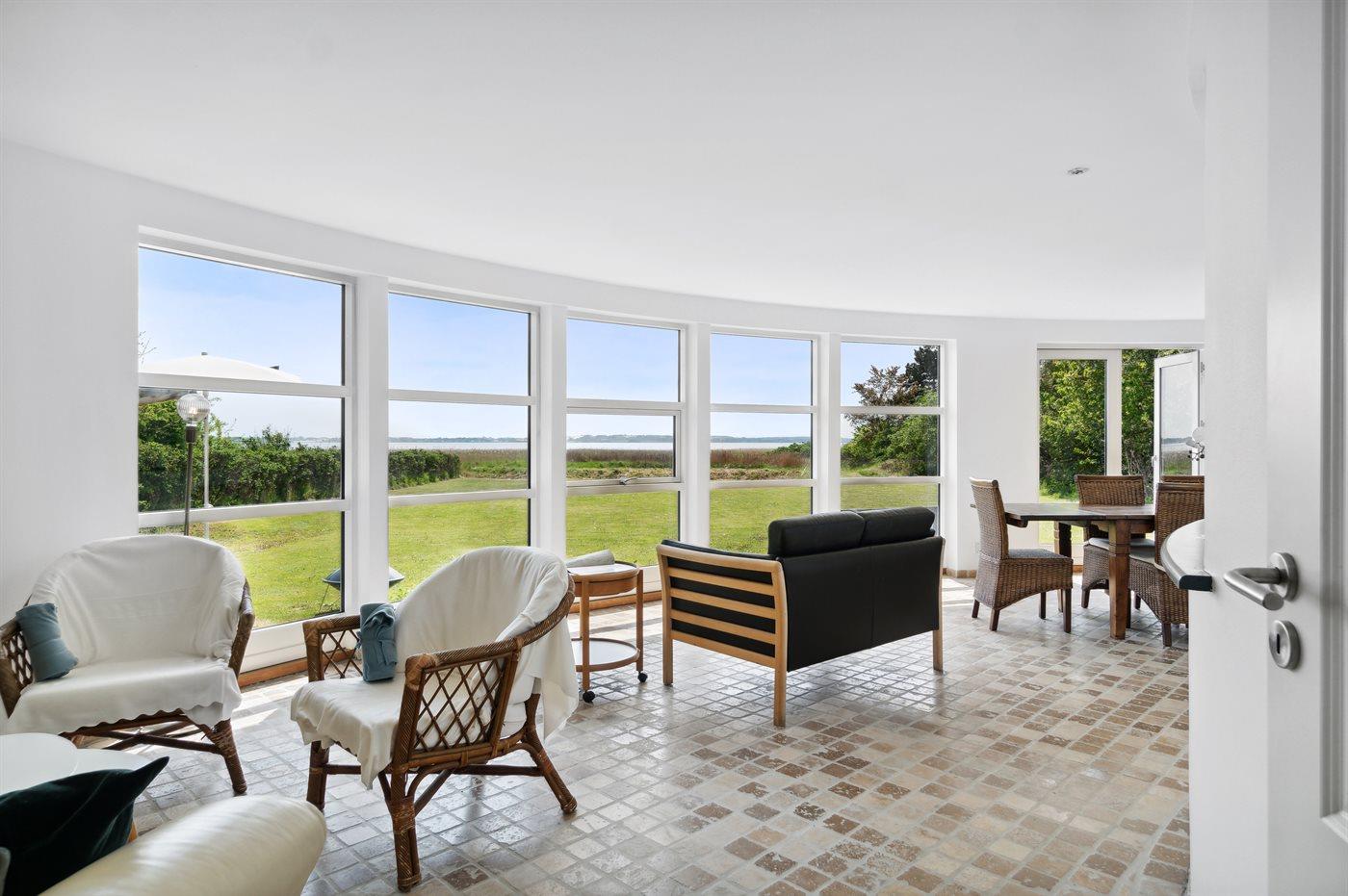 Panorama-Sommerhaus am Lammefjord mit Terrasse, Kamin und Fußbodenheizung, perfekt für Natur- und Wassergenießer.