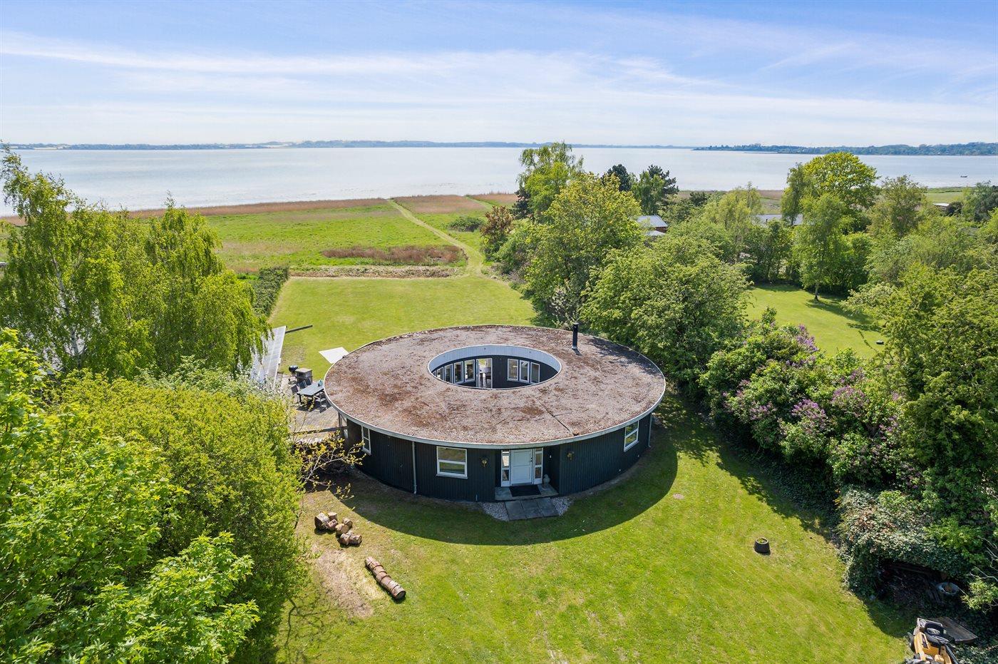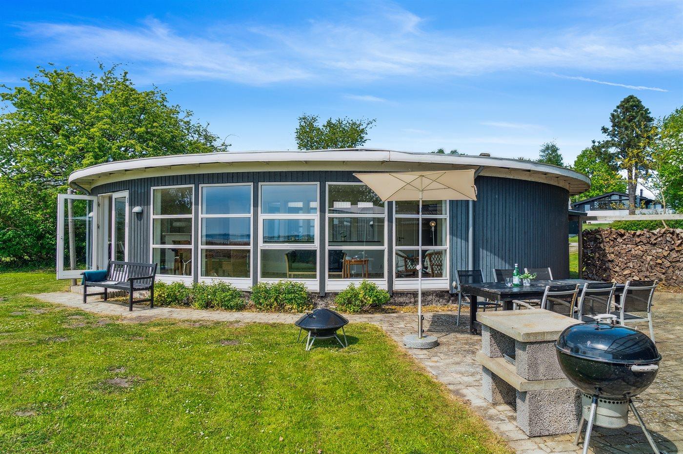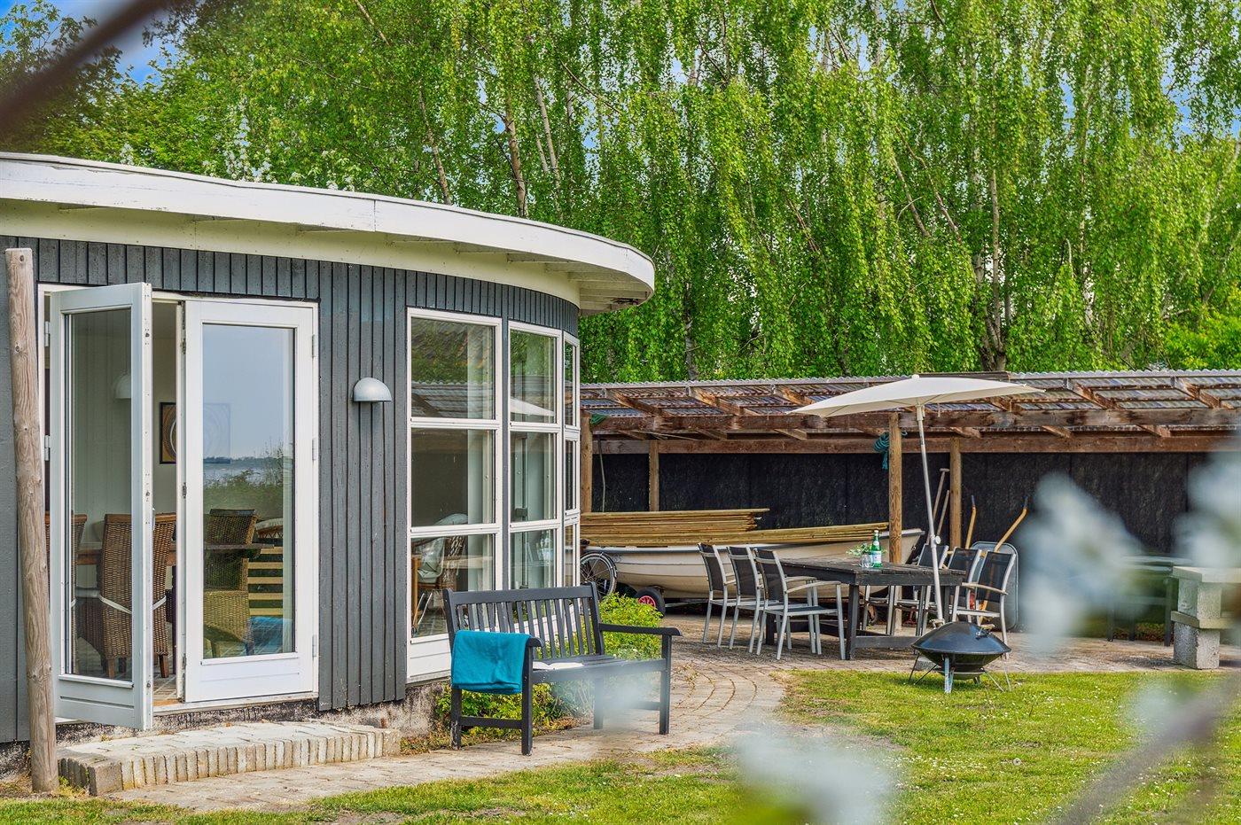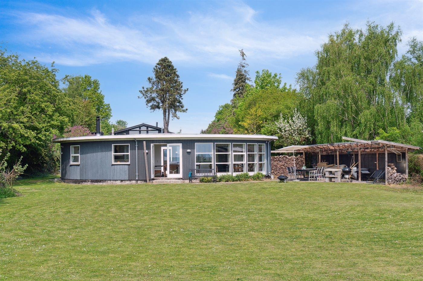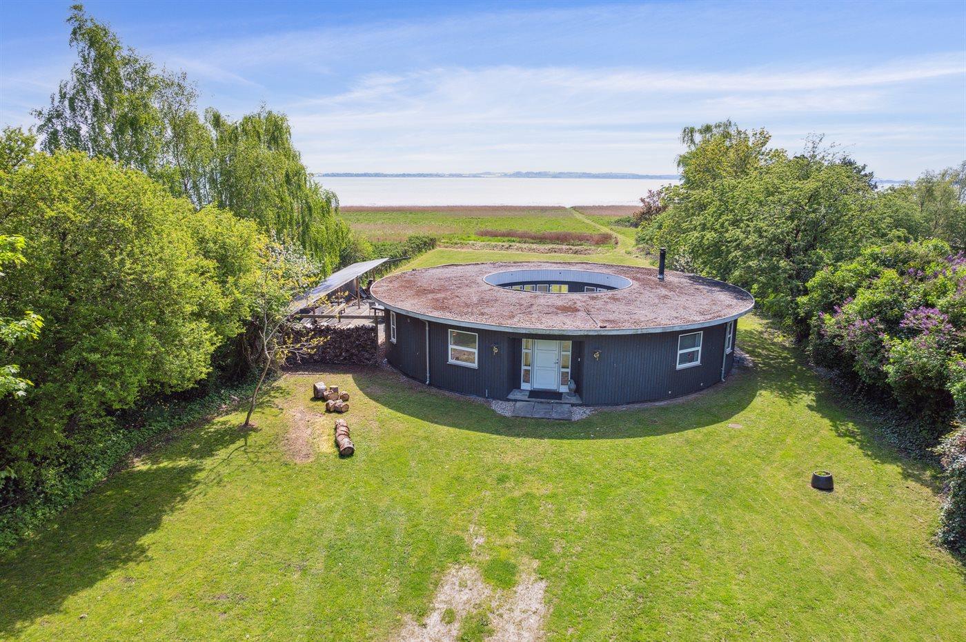 Dieses einzigartige und unik erbaute Sommerhaus liegt erster Reihe und hat Panoramaausblick auf den Lammefjord.