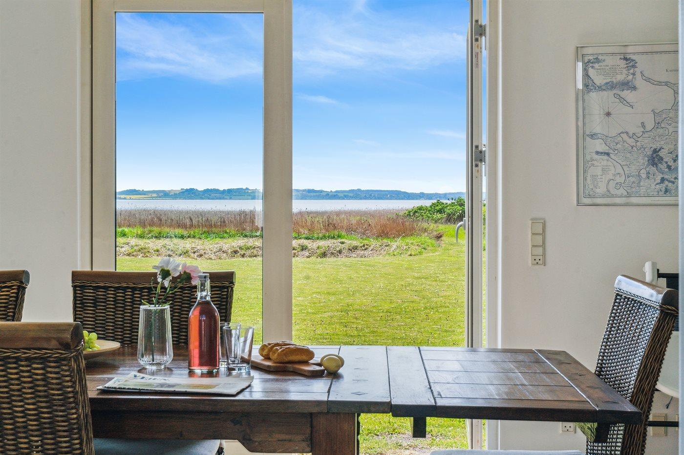 Vom Wohnzimmer und der Wohnküche aus haben Sie einen phantastischen Blick auf das Wasser, das nur 100 m vom Haus entfernt liegt – hier können Sie u. a. schöne Spaziergänge unternehmen und Angeln.