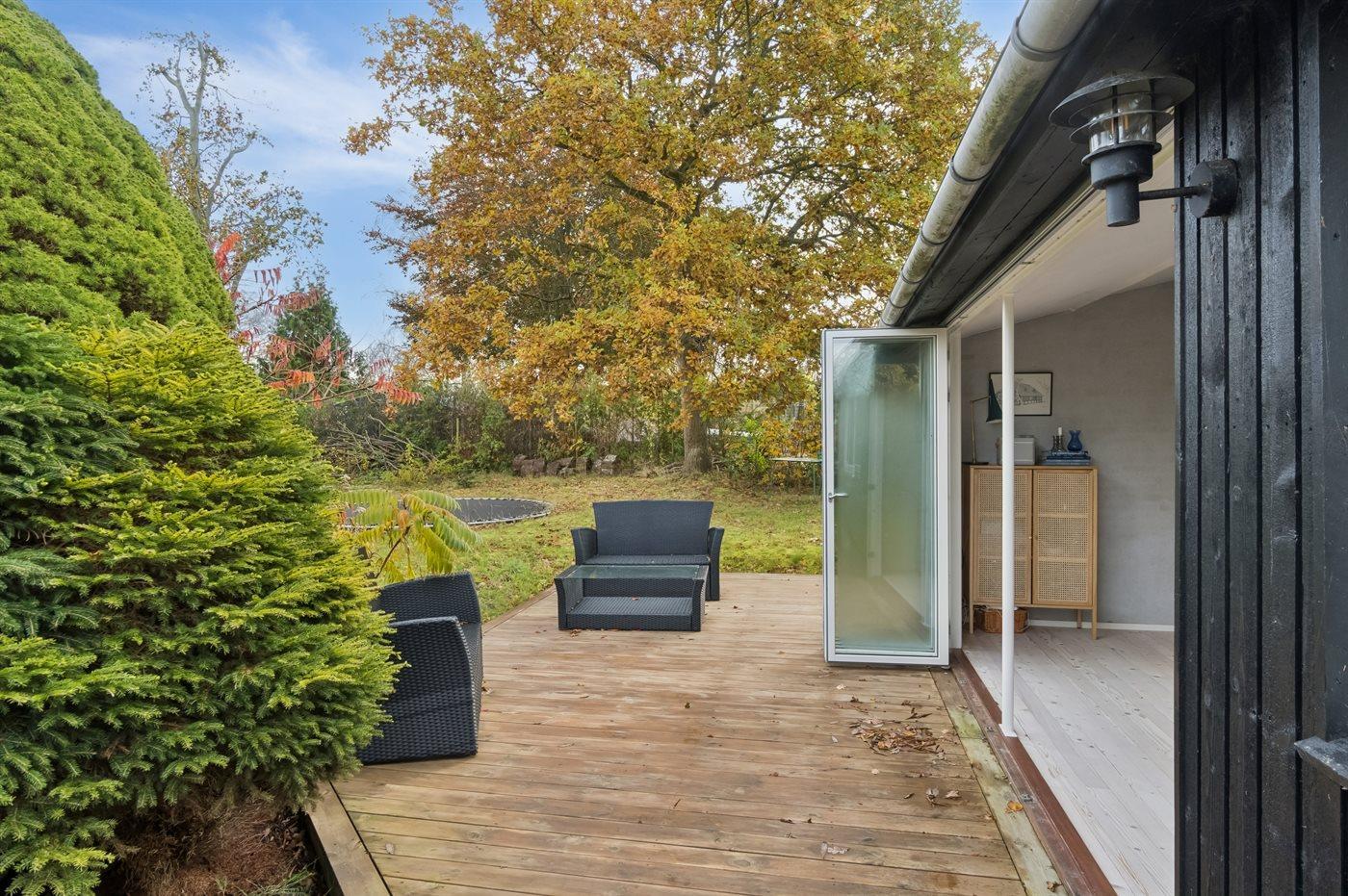 Gemütliches Ferienhaus in Grevinge mit großem Garten, Terrasse und Nähe zum Lammefjord, ideal für Natur- und Familienurlaub.