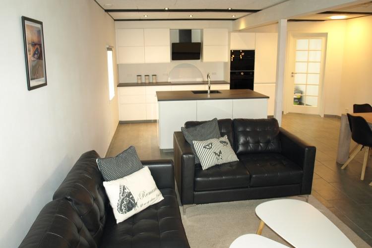 Hier befindet sich eine schöne, neue und stilvolle Küche mit u.a. Geschirrspüler und Mikrowelle in offener Verbindung mit dem Wohnzimmer, das mit guten Möbeln eingerichtet ist und über TV mit deutschen Kanälen verfügt. Ein Hochstuhl steht hier zur Verfügung.