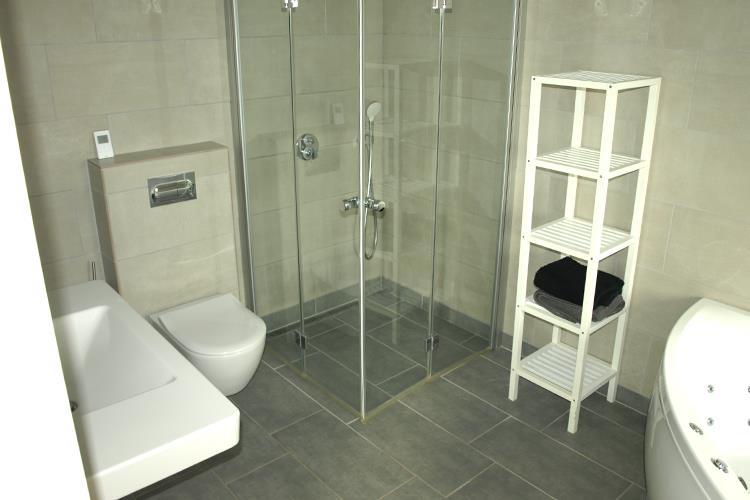 Das Haus verfügt über 2 Badezimmer. Ein Badezimmer ist komplett renoviert mit wandhängender Toilette, schöner Duschecke und einem schönen Eck-Spa. Hier gibt es sowohl eine Waschmaschine als auch einen Trockner.