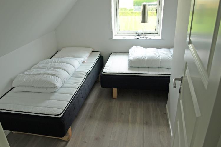 Das Haus verfügt über insgesamt 8 Einzelbetten + ein Kinderbett. Die Betten sind in 3 Schlafzimmer mit je 2 Einzelbetten aufgeteilt, und dann gibt es zwei Einzelbetten in einer Ecke im Wohnzimmer. Auf dem Treppenabsatz im ersten Stock gibt es zwei schöne Chaiselongue, in die Sie sich bei Bedarf ein wenig zurückziehen und vielleicht ein Buch lesen oder gute Musik hören können.