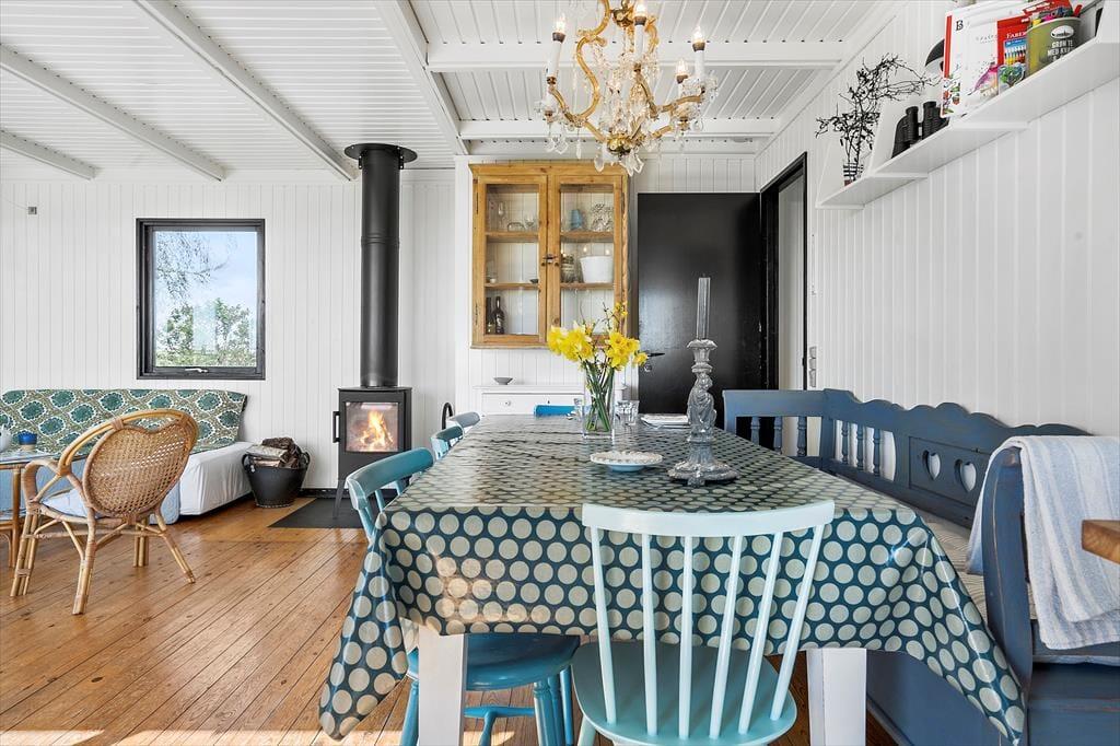 Der Kaminofen des Ferienhauses befindet sich zentral im Wohnzimmer, das der Mittelpunkt des Hauses ist. Das Wohnzimmer ist ideal, um sich mit Spielen zu entspannen, ein gutes Buch zu lesen oder den Holzofen anzuzünden. Das Haus verfügt auch über kostenloses WiFi. Direkt neben dem Wohnzimmer und der Küche befindet sich der Esstisch, der Platz für 6 Personen bietet. Das Haus ist klein, aber gemütlich, und hier ist Ihnen eine authentische Ferienhausatmosphäre garantiert.