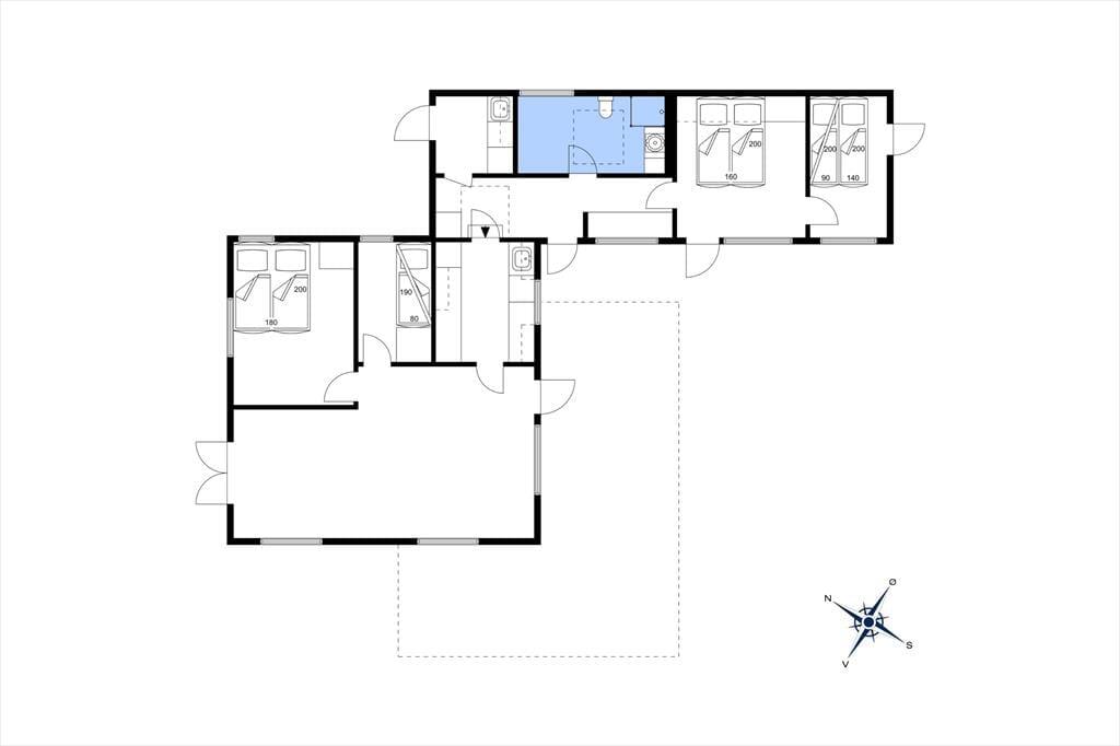 Das Ferienhaus verfügt über vier Schlafzimmer – drei mit Doppelbetten und eines mit einem Etagenbett. Die Zimmer sind einfach und funktional eingerichtet und sorgen für eine erholsame Nachtruhe nach einem Tag voller Strandspaziergänge und Erkundungstouren in der wunderschönen Natur Nordseelands. Die funktionale Küche bietet alles, was du für die Zubereitung leckerer Mahlzeiten benötigst, und der Essbereich hat genügend Platz für gemeinsame Mahlzeiten mit Familie und Freunden. Das geräumige Badezimmer ist mit einer Dusche ausgestattet.