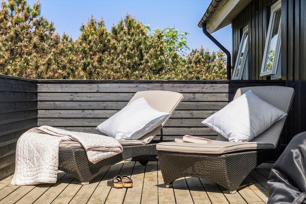 Das 2.982 m² große Naturgrundstück lädt zu ausgedehnten Sonnenbädern auf den Terrassen und zum Spielen im Gras ein. Gen Osten, Süden und Westen schließen Terrassen an das Mietobjekt. Sie werden daher zu jeder Tageszeit ein sonniges Plätzchen finden. Dank des hauseigenen Grills und der Gartenmöbel spricht nichts gegen einen gemütlichen Grillabend in reizvoller Umgebung.