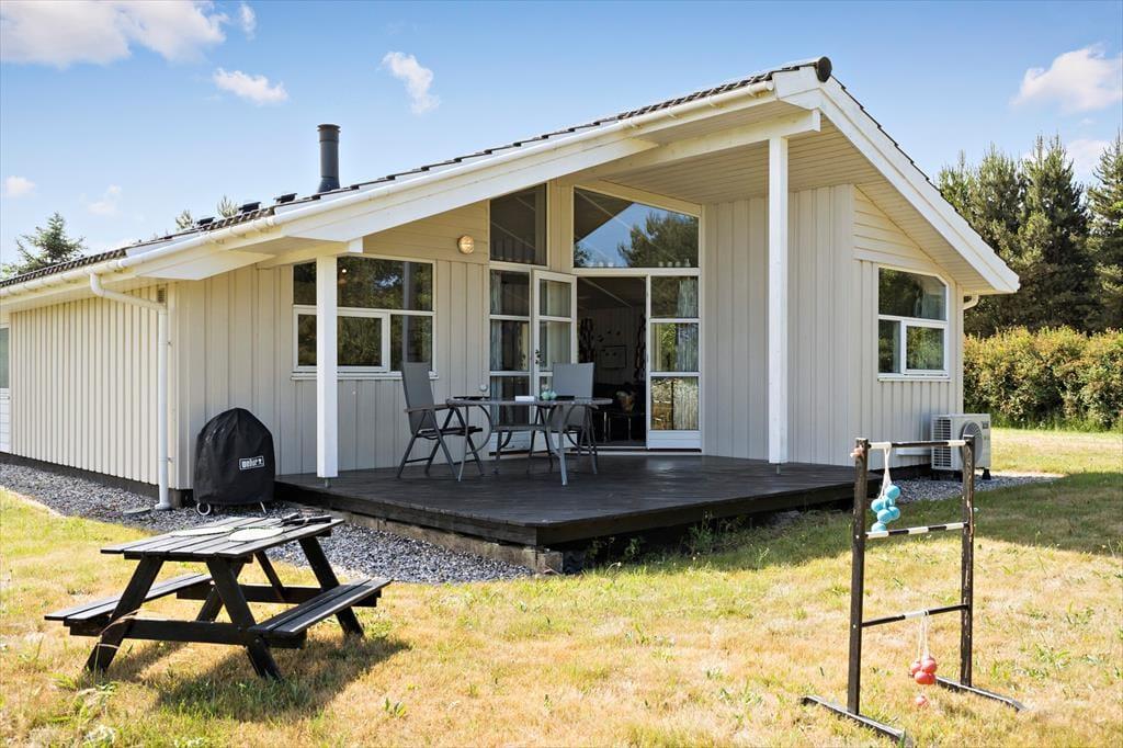Lodbjerg Hede ist ein friedvolles Ferienhausgebiet inmitten schöner Natur. In der Nähe des Hauses dürfen sich Ihre Kinder auf einen guten Spielplatz freuen. Zügig erreichbar sind der örtliche Golfplatz, der nächstgelegene Put & Take-Angelteich und die schönen Nordseestrände. Der Vest Stadil Fjord erfreut sich bei Vogelkundlern größter Beliebtheit. Per Fahrrad können Sie sehr gut die Umgebung erkunden. Per Pkw und per Fahrrad gelangen Sie schnell in den pulsierenden Badeort Søndervig, der ein breites Aktivitätsprogramm und eine gute Auswahl an Lokalitäten bietet. Spaß und Abwechslung garantiert Søndervigs riesiges Tropenbadeland. Ein schöner, stimmungsvoller Ausflug führt Sie in die alte, beschauliche Hafen- und Handelsstadt Ringkøbing, die hübsch platziert am Ufer des Ringkøbing Fjords liegt. Der interessante Fischereihafenort Hvide Sande ist ebenfalls den ein oder anderen Abstecher wert.