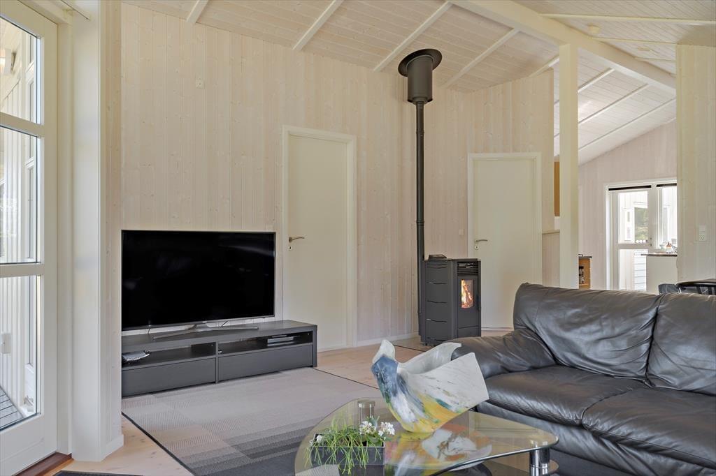 Das 95 m² große Urlaubsdomizil besticht mit einer ansprechenden Wohnatmosphäre, die unter anderem auf die hohen Decken und die hellen, holzvertäfelten Wände zurückzuführen ist. Große Fenster lassen viel Tageslicht durch den Wohnraum strömen und offenbaren einen schönen Ausblick auf das grüne Naturgrundstück. Der Pelletofen sorgt für ein Maximum an Gemütlichkeit und Wärme. Im Wohnraum verbringen Sie gemütliche Filmabende auf dem Sofa vor dem Flachbild-TV und erholsame Stunden mit einem spannenden Buch in den Relaxstühlen. Ihre Mahlzeiten bereiten Sie in der offenen Küche zu. Der Esstisch lädt zu geselligen Runden am Abend ein. Pure Erholung und Entspannung mit einem Hauch von Wellnessflair erwartet Sie im großen Badezimmer, das mit einem Whirlpool und einer Sauna verwöhnt. Die drei schlicht und einfach eingerichteten Schlafräume sind ebenso mit einem Holzfußboden versehen, wie der Wohnraum.