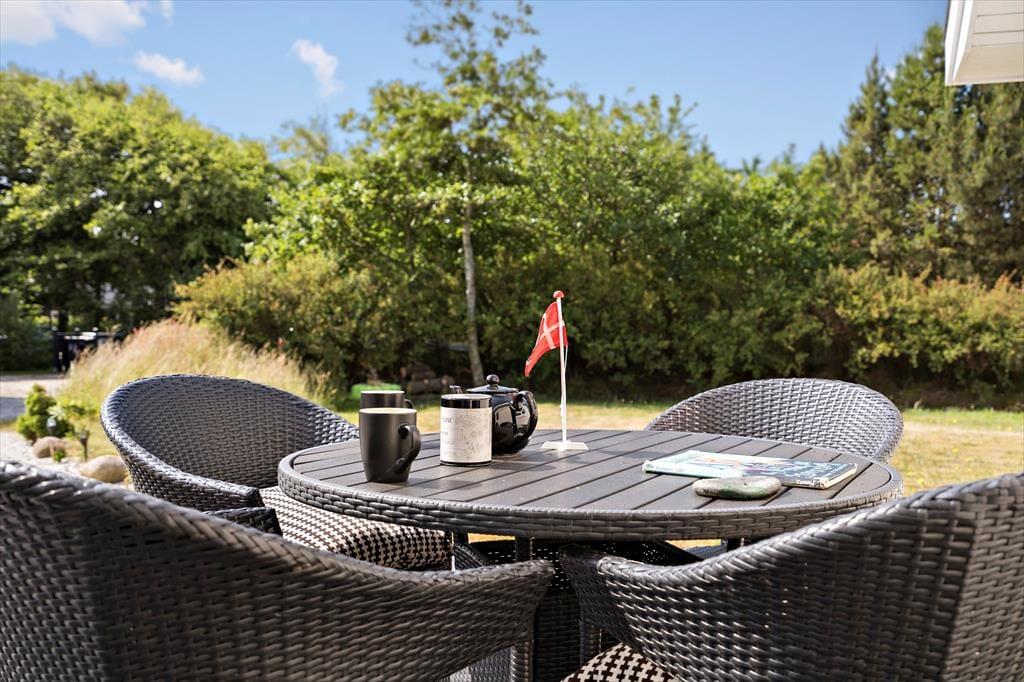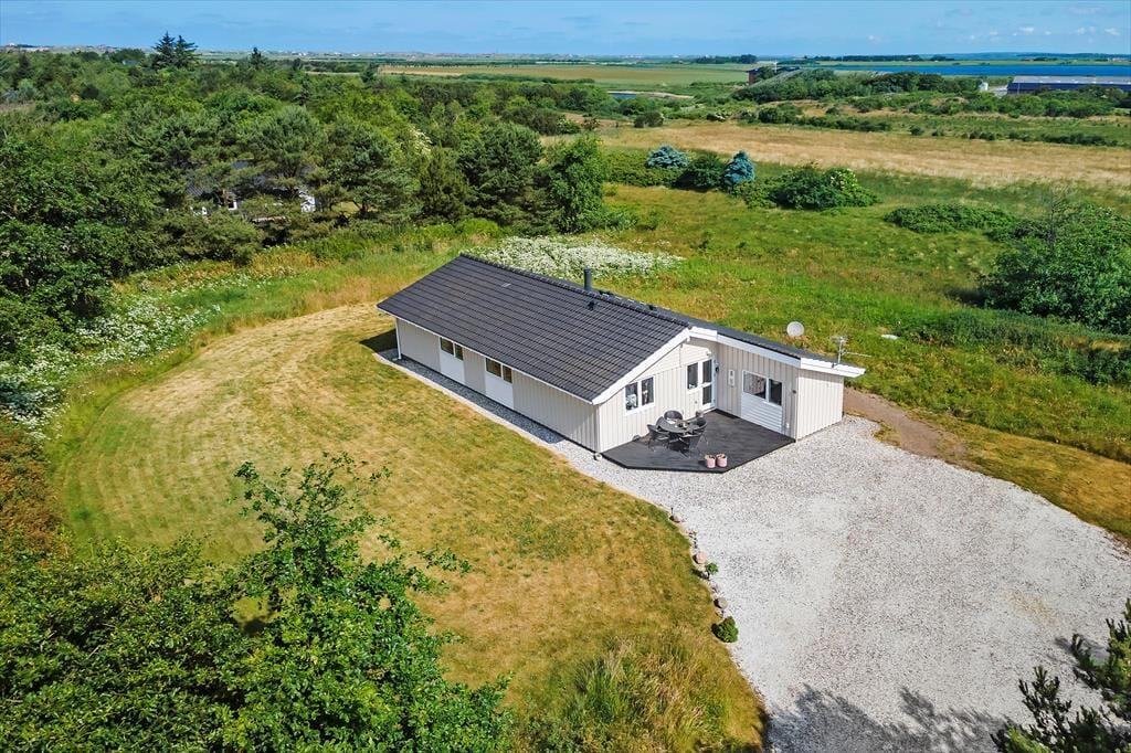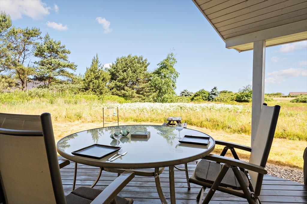 Das Ferienhaus überzeugt mit seiner attraktiven Lage am Ende der Sackgasse Irisvej. Ihr direkter Nachbar ist die offene Landschaft. Ihr Naturgrundstück umfasst eine Fläche von 2.003 m² und bietet Platz zum Umhertollen und Spielen. Ruhige Stunden genießen Sie auf den Terrassen. Während sich die offene Terrasse an der Ostseite für ein Frühstück in der Morgensonne anbietet, wird es Sie im Laufe des Tages eher auf die teilweise überdachte Westterrasse ziehen, die sich in Verlängerung des Wohnraumes befindet.