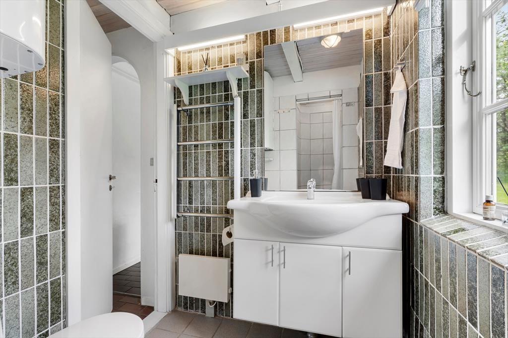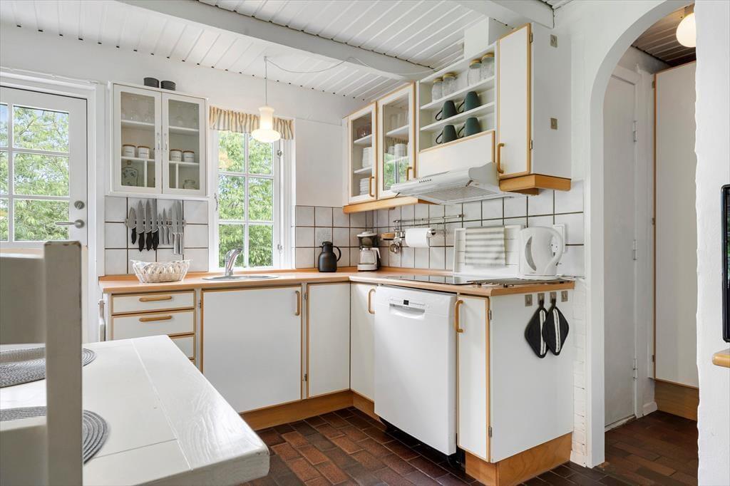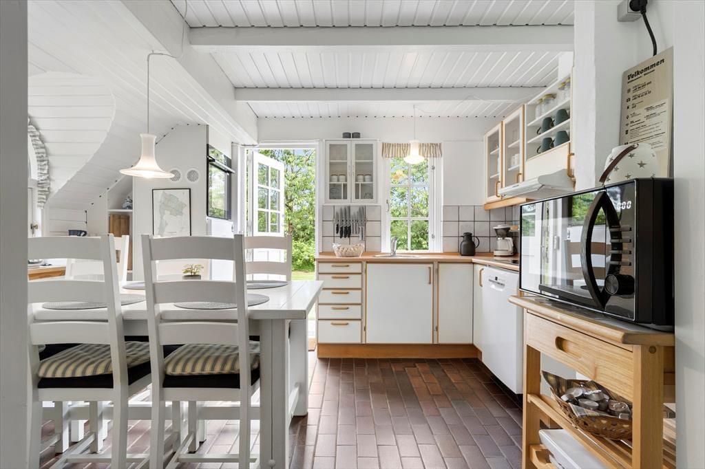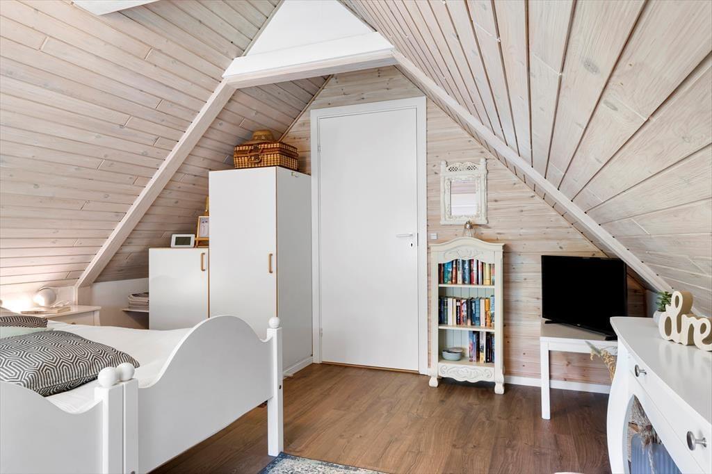Das zweigeschossige, 101 m² große Ferienhaus bietet eine schöne Raumaufteilung für sechs Personen. Die gemütliche und persönliche Einrichtung besticht mit zahlreichen schönen Details - vom Kaminofeneinsatz im Wohnraum bis zum Whirlpool im Badezimmer, der dem Haus einen Hauch von Wellnessflair verleiht. Das Badezimmer befindet sich im ersten Stock, in dem auch einer der drei Schlafräume untergebracht ist. Die beiden anderen Schlafräume befinden sich zusammen mit einem Duschbadezimmer und dem Wohnraum im Erdgeschoss. Die gut ausgestattete Küche fügt sich offen in den Wohnraum ein. Zu den modernen Annehmlichkeiten zählen gutes WiFi, eine energiesparende Wärmepumpe und ein großer Flachbild-TV mit Chromecast. In diesem Urlaubsdomizil werden Sie sich bestens erholen und entspannen.