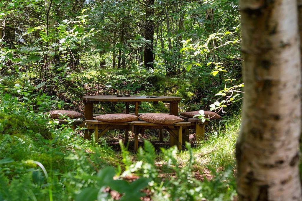 Das Grundstück bietet mit einer Fläche von 2.850 m² sehr viel Platz zum Spielen und Erholen unter freiem Himmel. Die Grasfläche wird von schönem, abwechslungsreichen Bewuchs eingerahmt, sodass Sie sich unter freiem Himmel angenehm ungestört und windgeschützt aufhalten. Südlich des Hauses lädt eine schöne Terrasse zu gemütlichen Stunden im Liegestuhl und zu geselligen Grillabenden ein.
